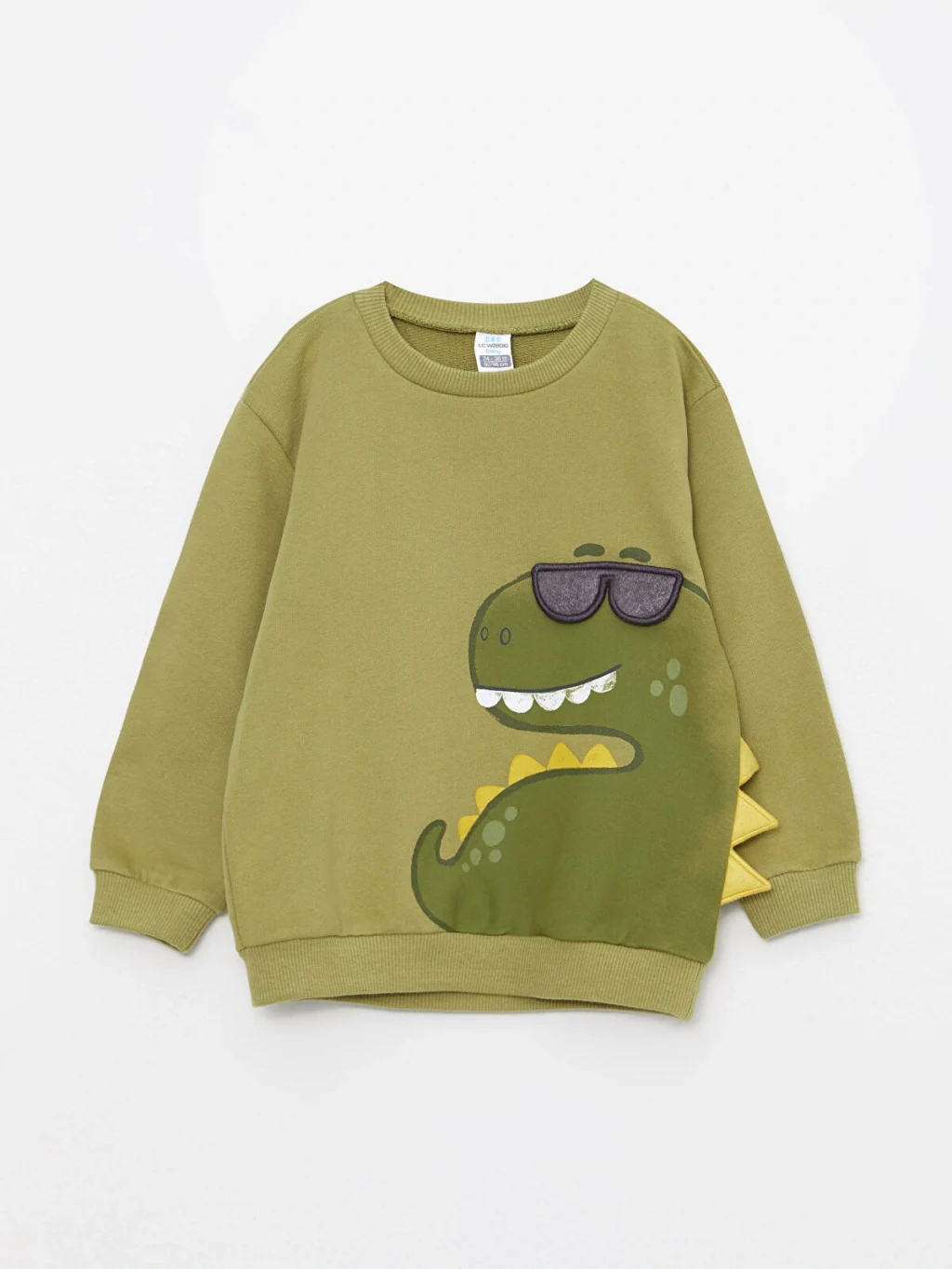 LCW Kids Gri Bisiklet Yaka Baskılı Uzun Kollu Erkek Çocuk Sweatshirt