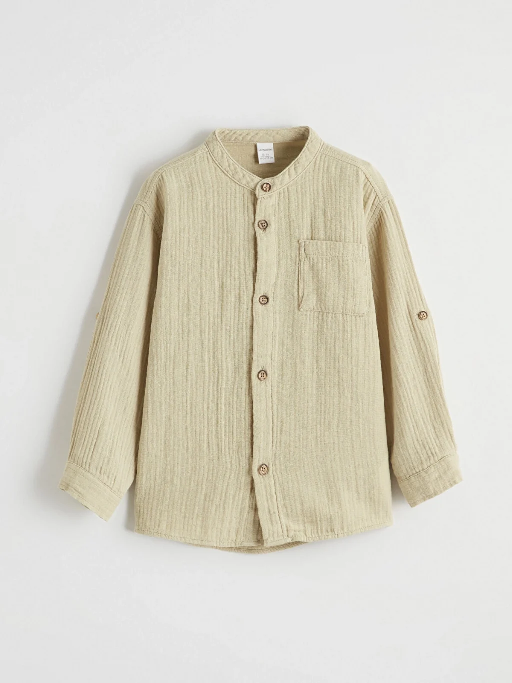 Hakim yakalı erkek çocuk gömlek, uzun kollu olup kolu katlanabilir özelliktedir. Önden düğme kapamalı ve tek ceplidir.