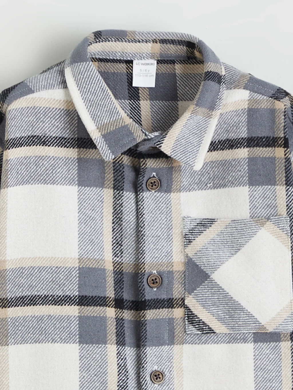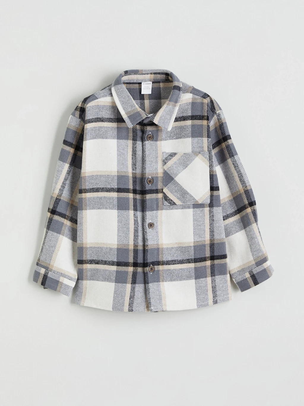 Kareli desenli, uzun kollu erkek çocuk gömlek, flanel kumaştan üretilmiştir. Göğsünde tek cepli olup, önden düğme kapamalıdır.