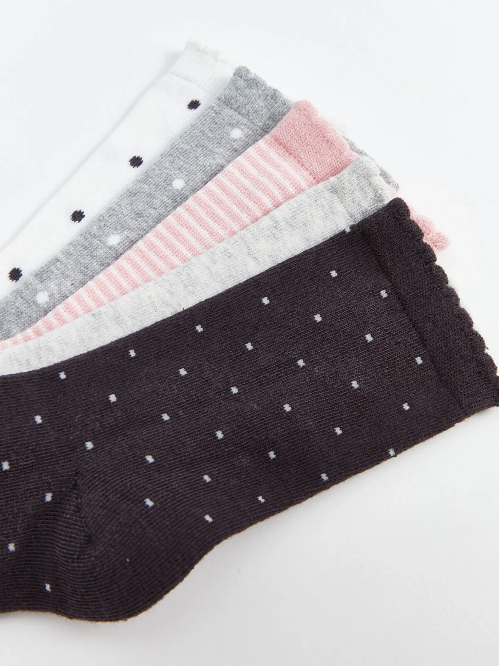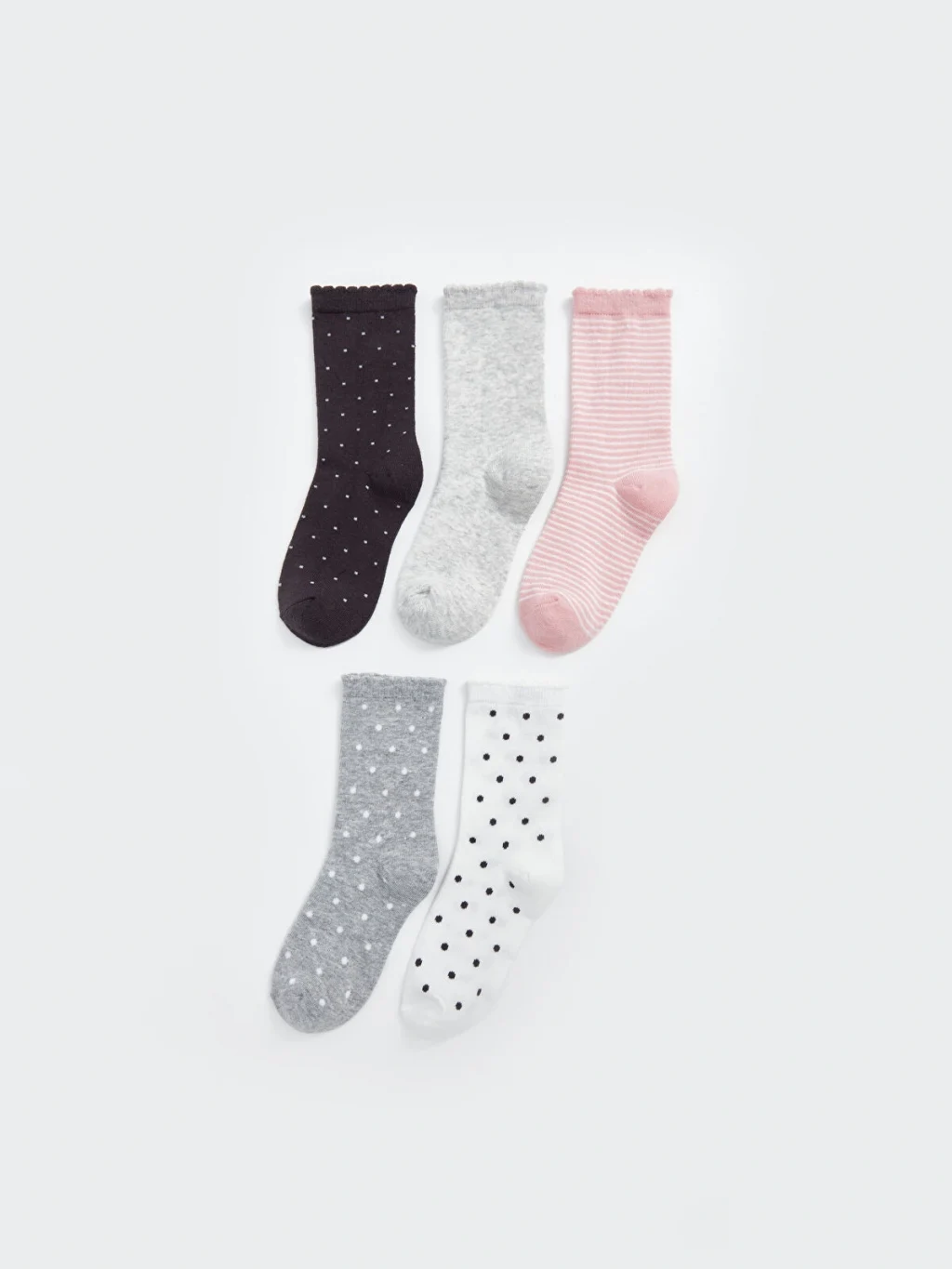 Kız çocuk 5'li soket çorap, pamuk karışımlı esnek kumaşı ve çeşitli desenleriyle dikkat çeker. Her adımda çocuğunuzun rahatlığını ve tarzını destekler. Günlük kullanıma uygundur.