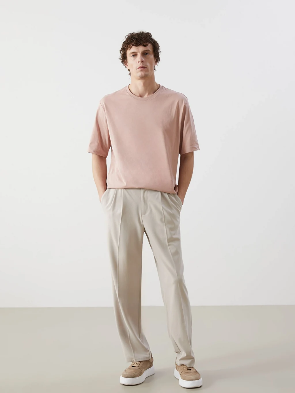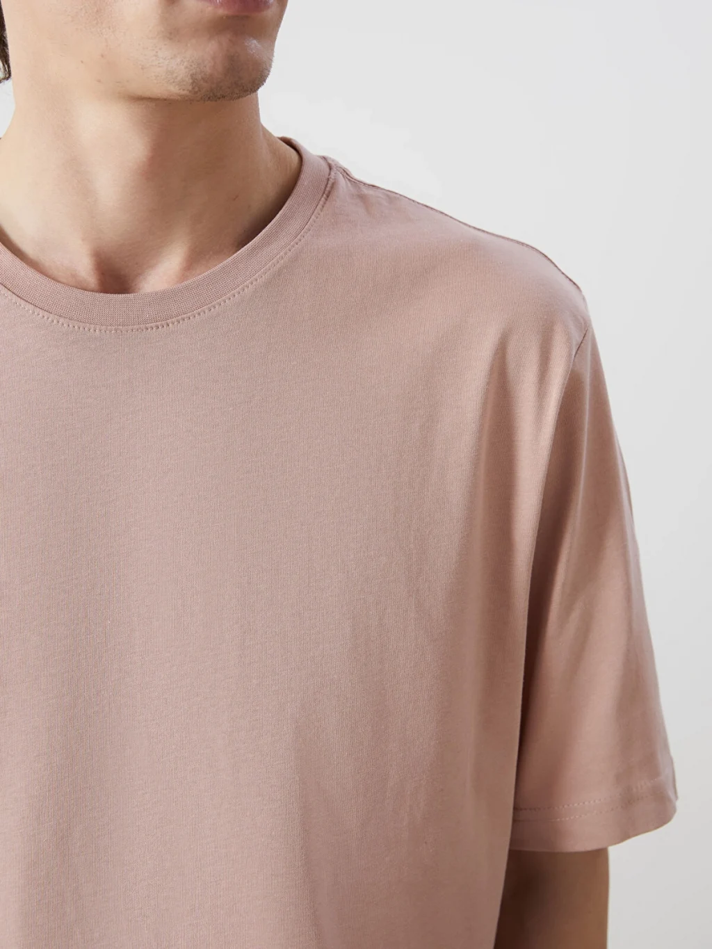 Bisiklet yaka ve kısa kollu erkek tişört, %100 pamuklu penye kumaştan üretilmiştir. Standart kalıplıdır.