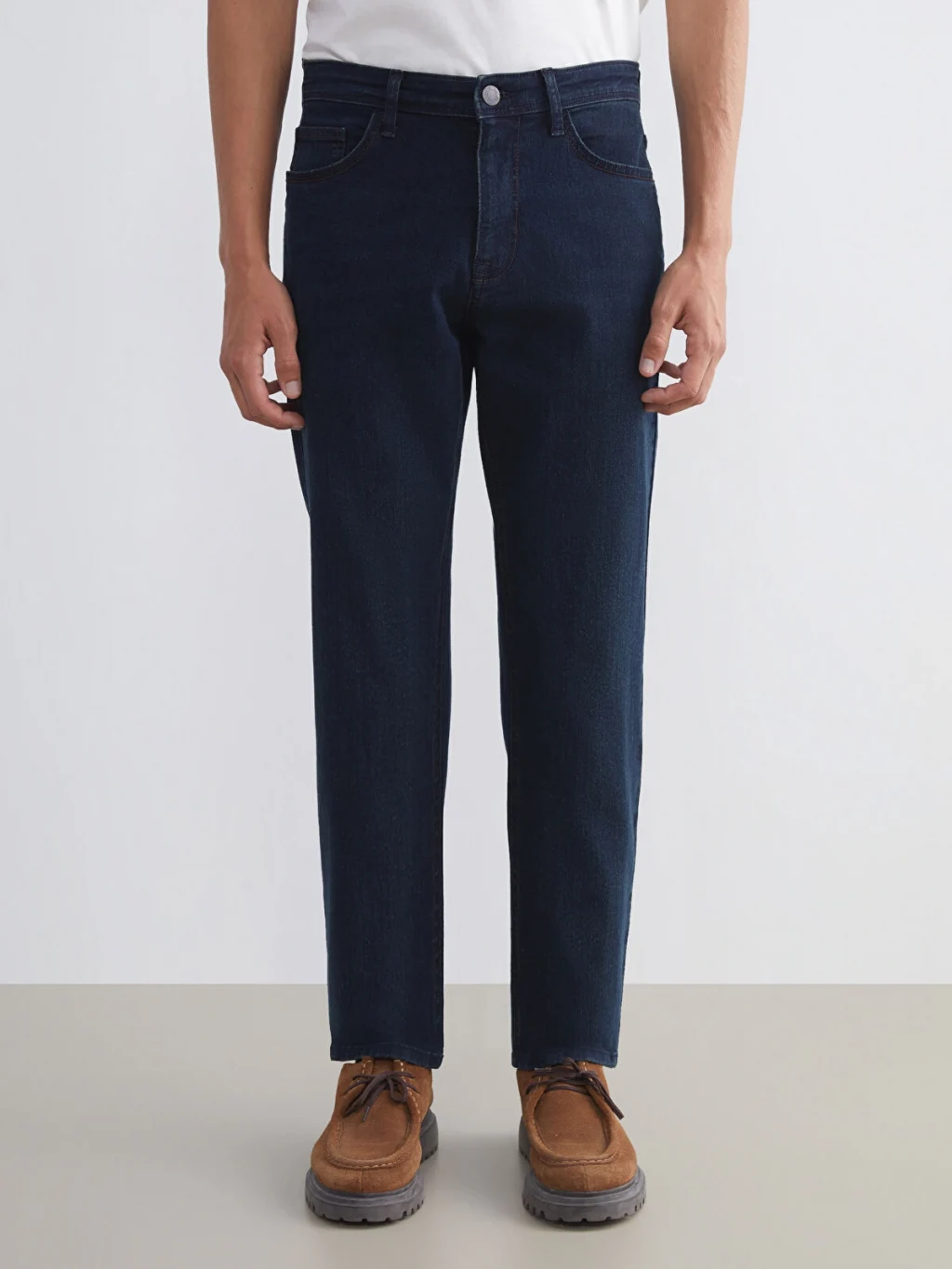 Regular fit jean pantolon, dizden paçaya doğru inen düz kesimi sayesinde gün içinde kullanım kolaylığı ve rahat kombinleme özelliğiyle her görünüme uyum sağlar.