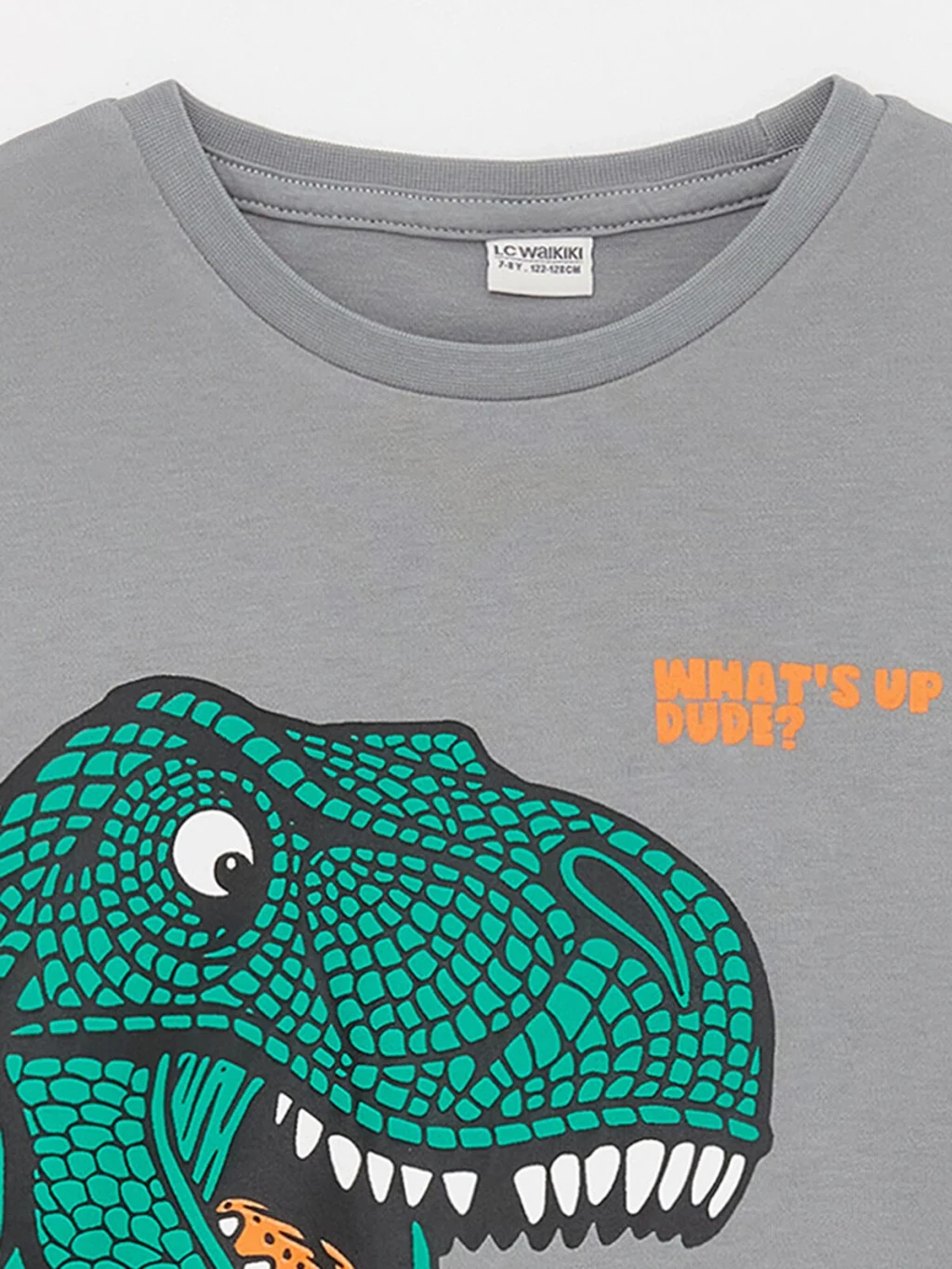 Pamuklu interlok kumaştan üretilen tişört, manşetleri ve etek ucu ribanalı detayıyla konforlu bir kullanım sunar. Baskılı tasarımı ile çocukların eğlenceli ve enerjik tarzını yansıtır.