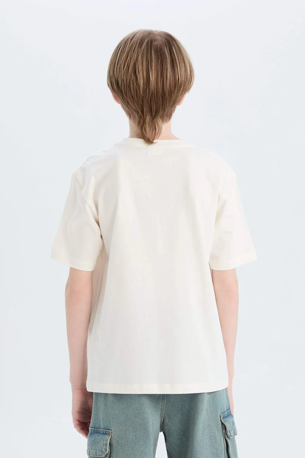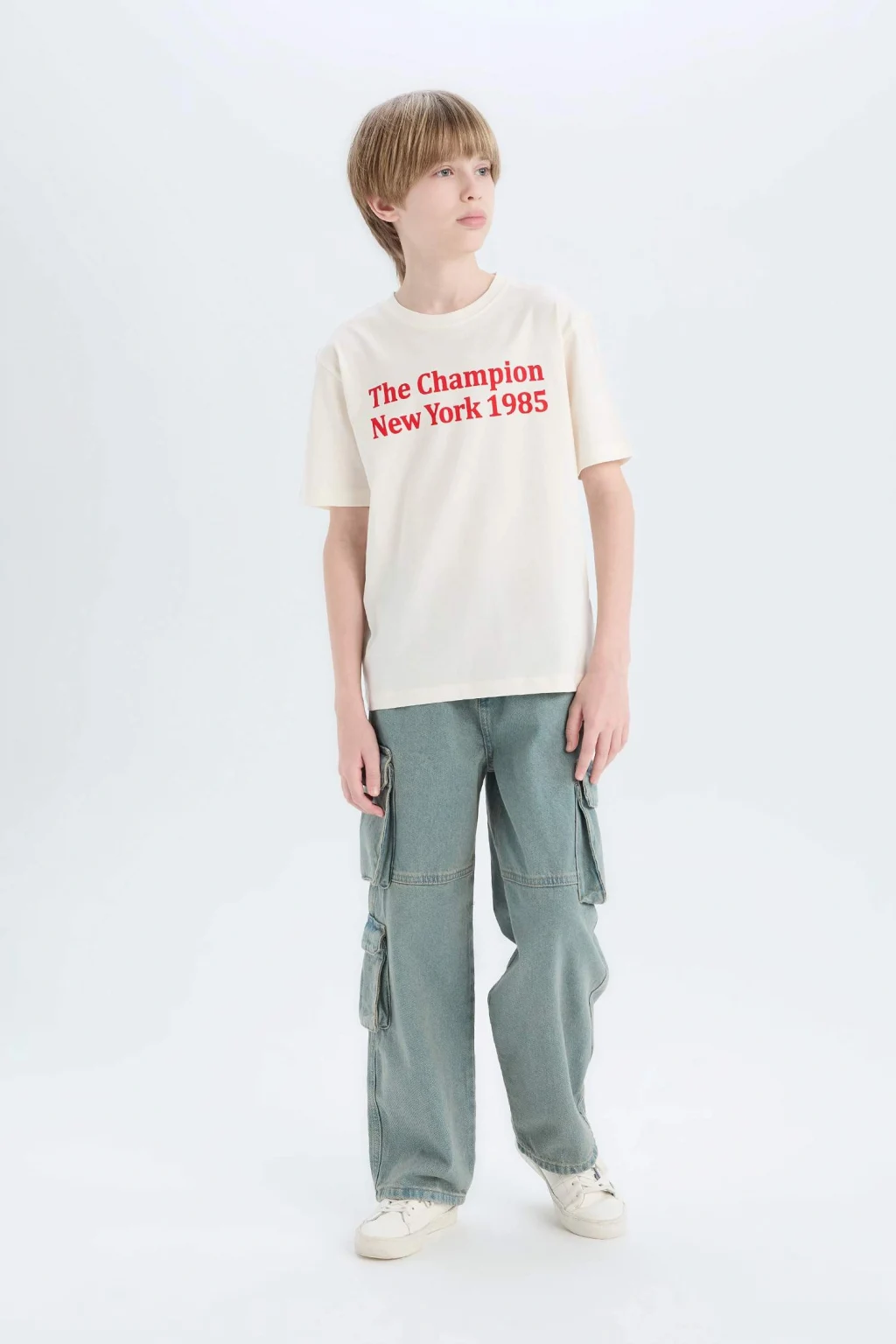 Erkek Çocuk Bisiklet Yaka Baskılı Kısa Kollu Tişört, enerjik baskıları ve rahat kesimiyle çocukların tarzını yansıtır. Yumuşak kumaşı sayesinde gün boyu konfor sunarken, şık tasarımıyla da dikkat çeker.