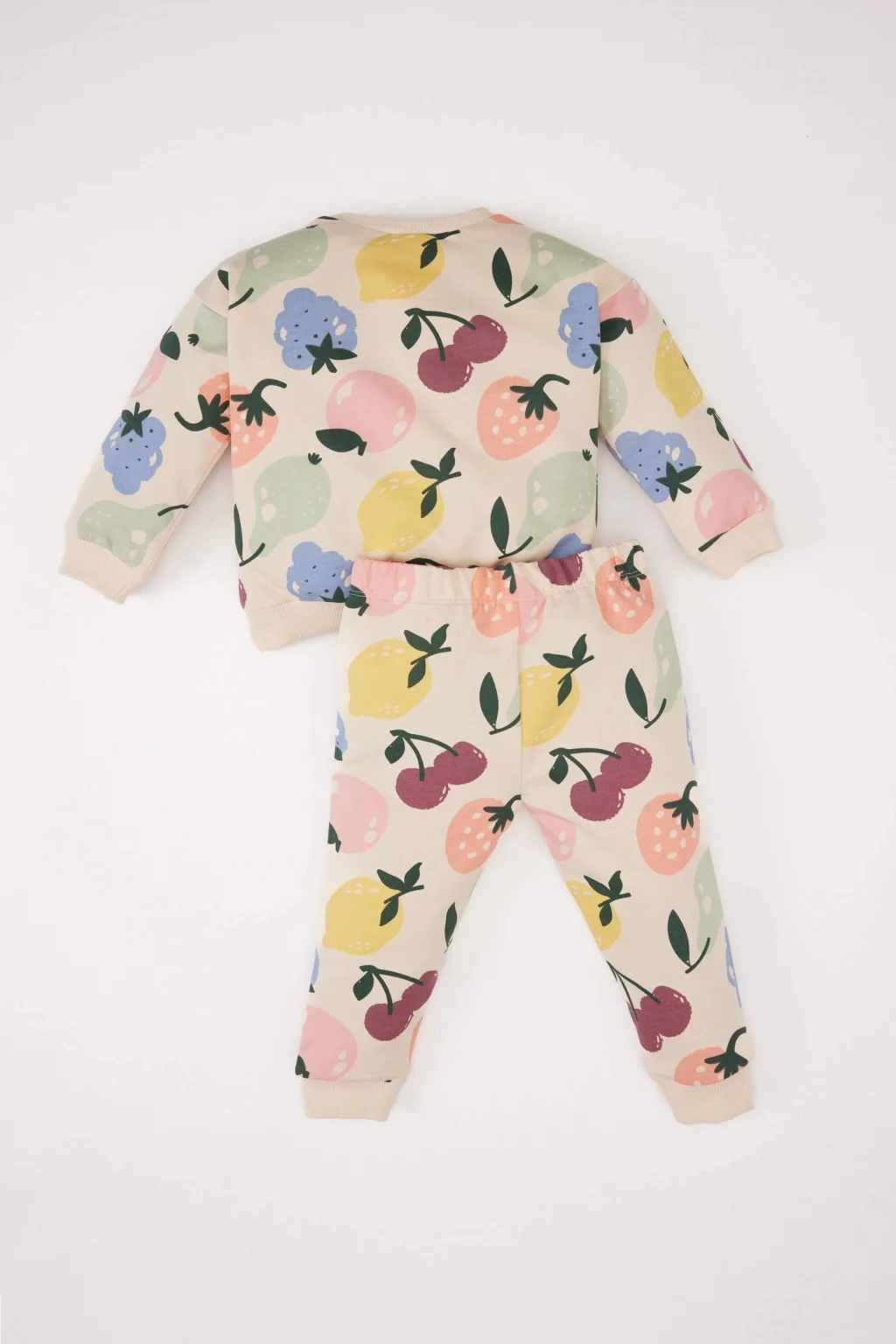 Kız bebekler için tasarlanmış bu 2'li takım, meyve desenli bisiklet yaka sweatshirt ve beli lastikli eşofman altı ile şıklığı ve rahatlığı bir arada sunar. Canlı renkler ve sevimli meyve desenleri, tatlı bir görünüm oluştururken, esnek kumaşı hareket özgürlüğü sağlar. Hem günlük kullanım hem de rahat aktiviteler için ideal bir seçenek.