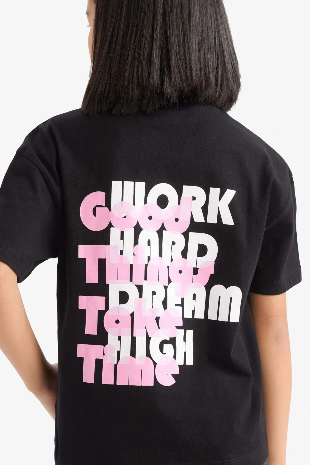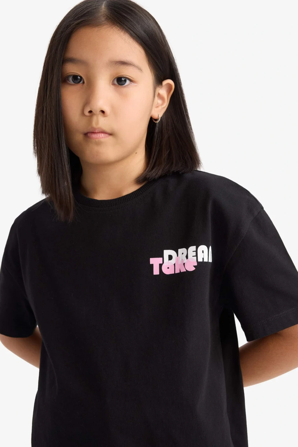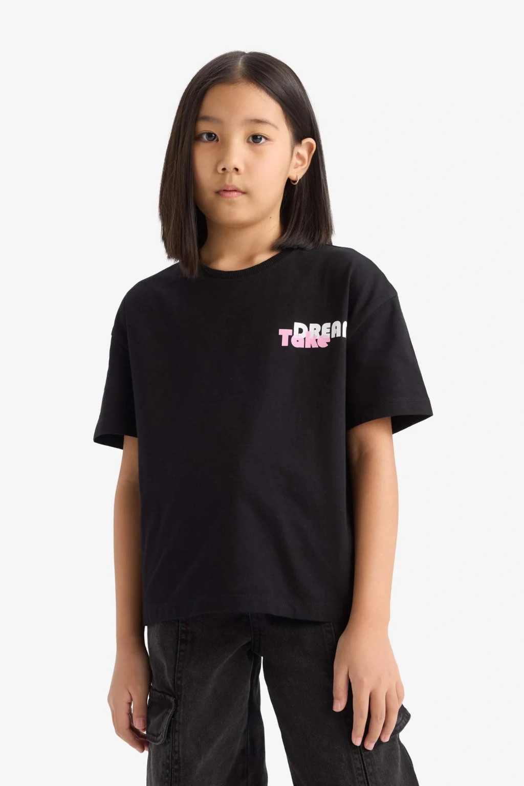 Şık ve rahat bir seçenek arayan Kız Çocuklar için Siyah Bisiklet Yaka Kısa Kollu Tişört. İlkbahar/Yaz mevsimlerinde kullanım için ideal olan bu tişört, örme kumaşıyla rahatlık sunar. Relax Fit kesimiyle kullanıcıya konfor sağlar. Trendi yakalamak isteyen Çocuklar için harika bir tercih.