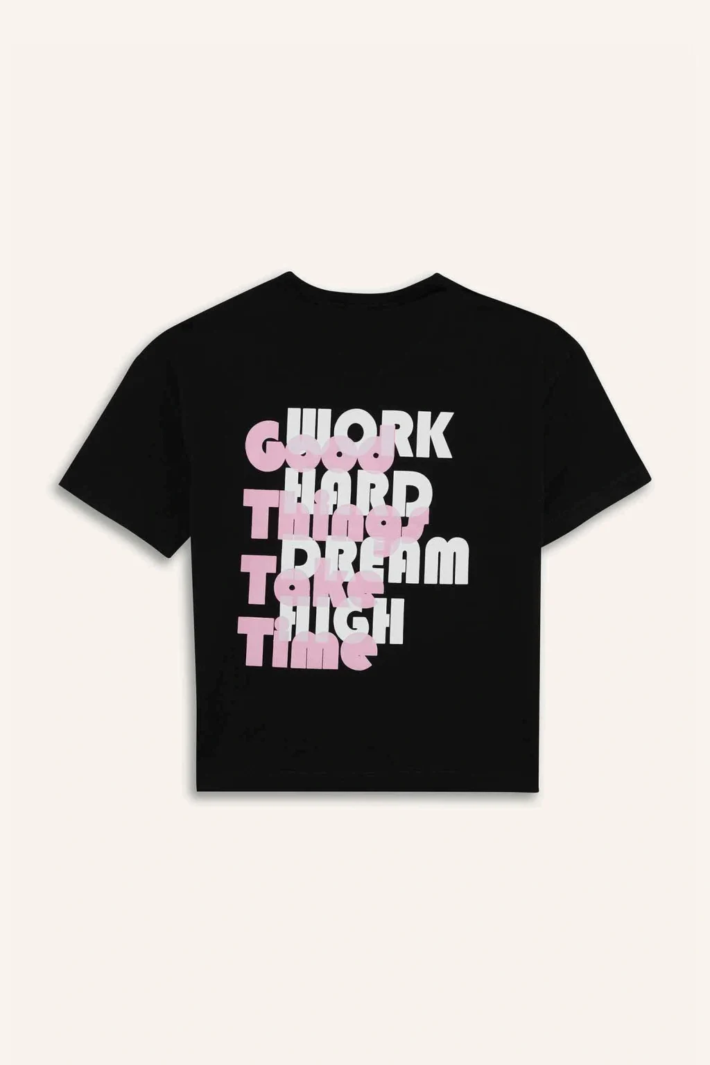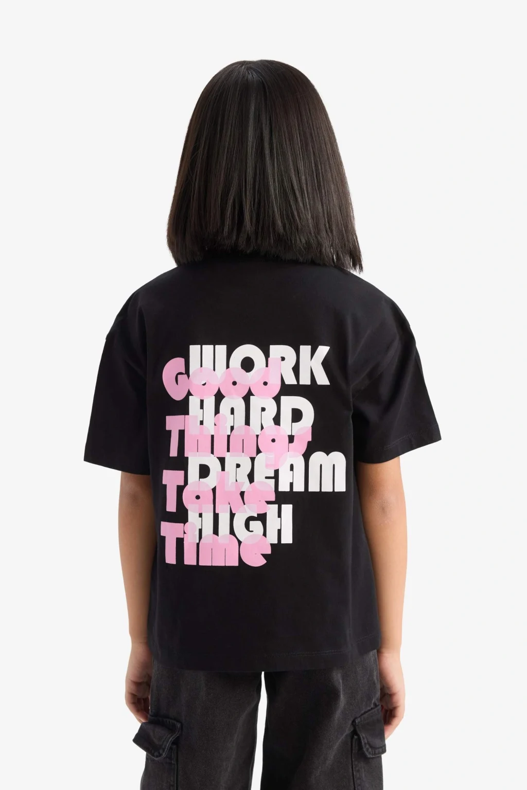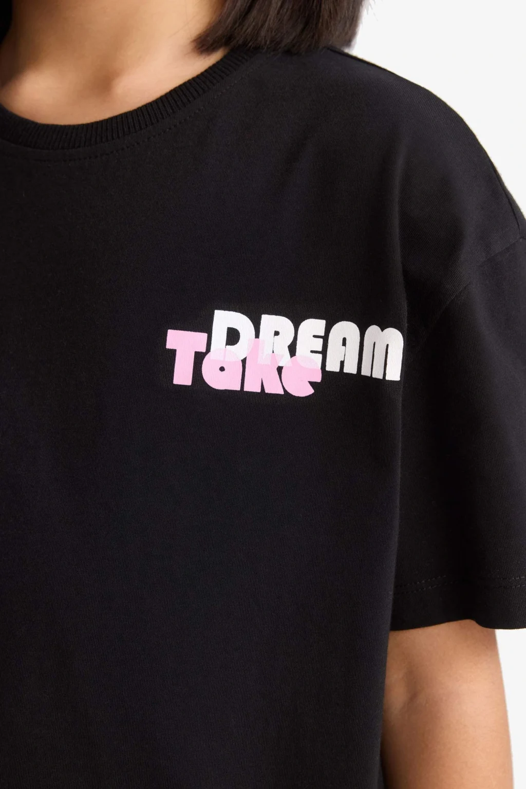 Şık ve rahat bir seçenek arayan Kız Çocuklar için Siyah Bisiklet Yaka Kısa Kollu Tişört. İlkbahar/Yaz mevsimlerinde kullanım için ideal olan bu tişört, örme kumaşıyla rahatlık sunar. Relax Fit kesimiyle kullanıcıya konfor sağlar. Trendi yakalamak isteyen Çocuklar için harika bir tercih.