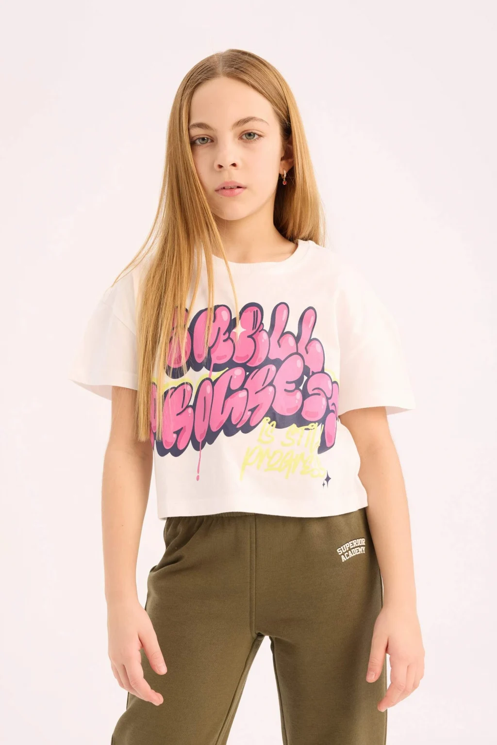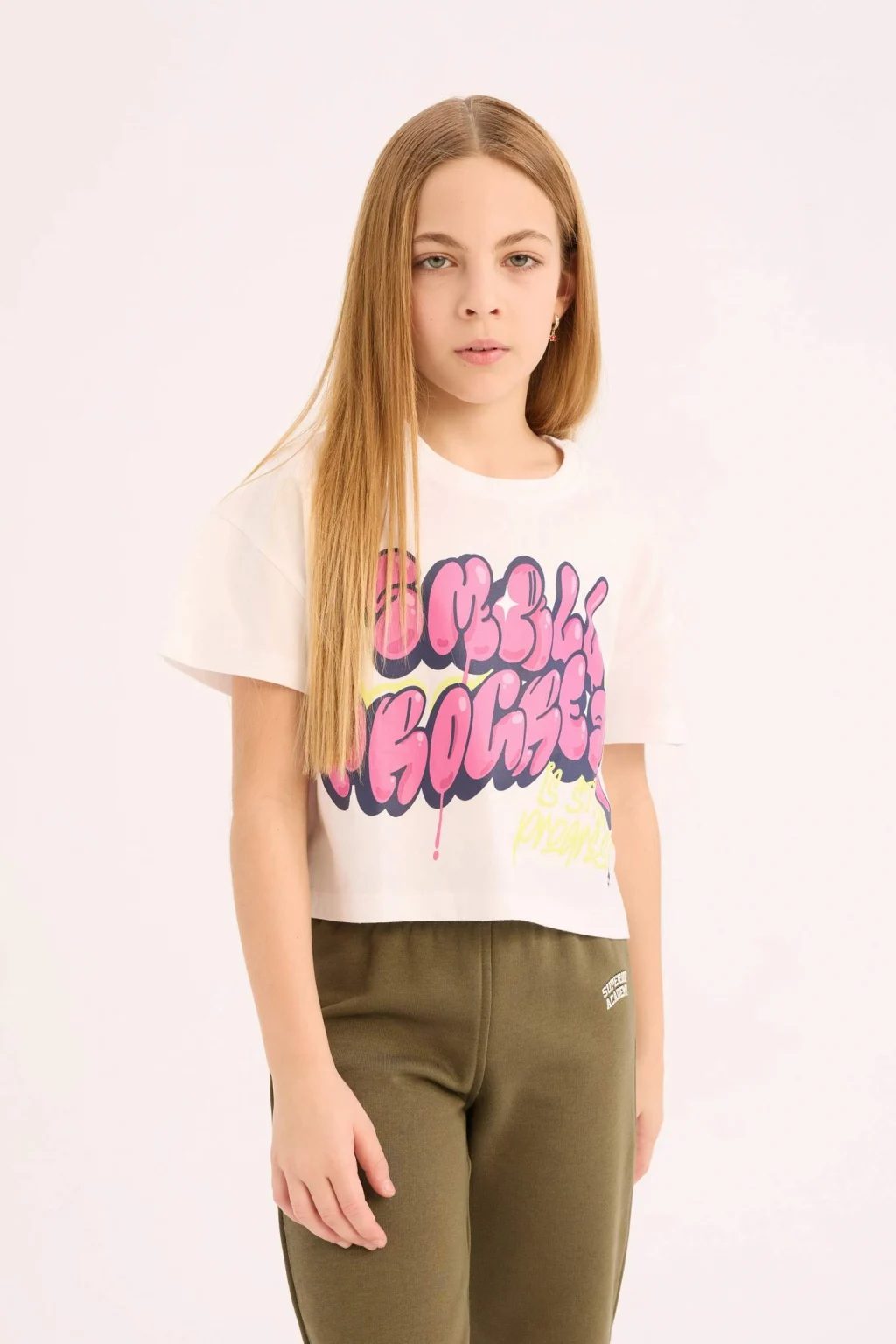 Kız çocuk boxy fit bisiklet yaka baskılı kısa kollu tişört, rahat kesimi ve eğlenceli baskılarıyla dikkat çeker. Yumuşak pamuklu kumaşı, gün boyu konfor sunar. Hem şık hem de rahat bir seçenek olan bu tişört, yaz aylarının vazgeçilmezi olacak.