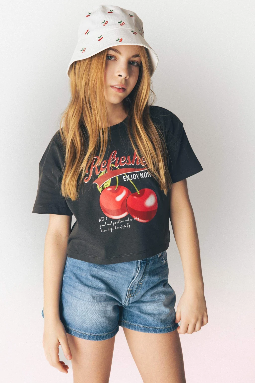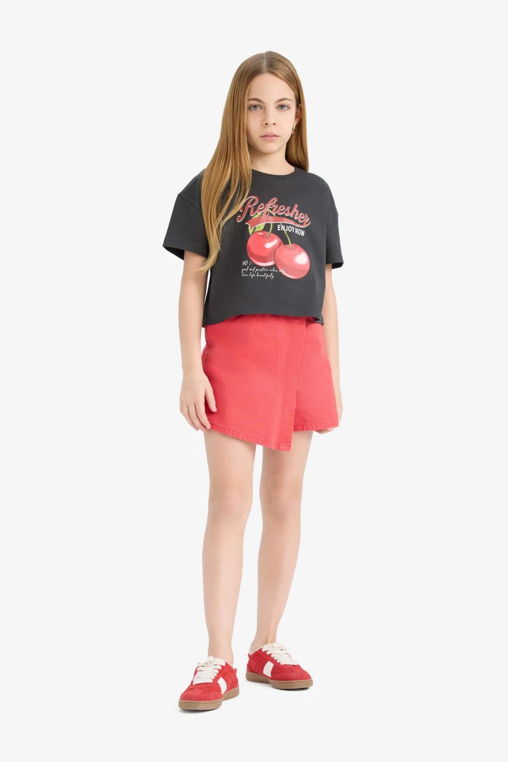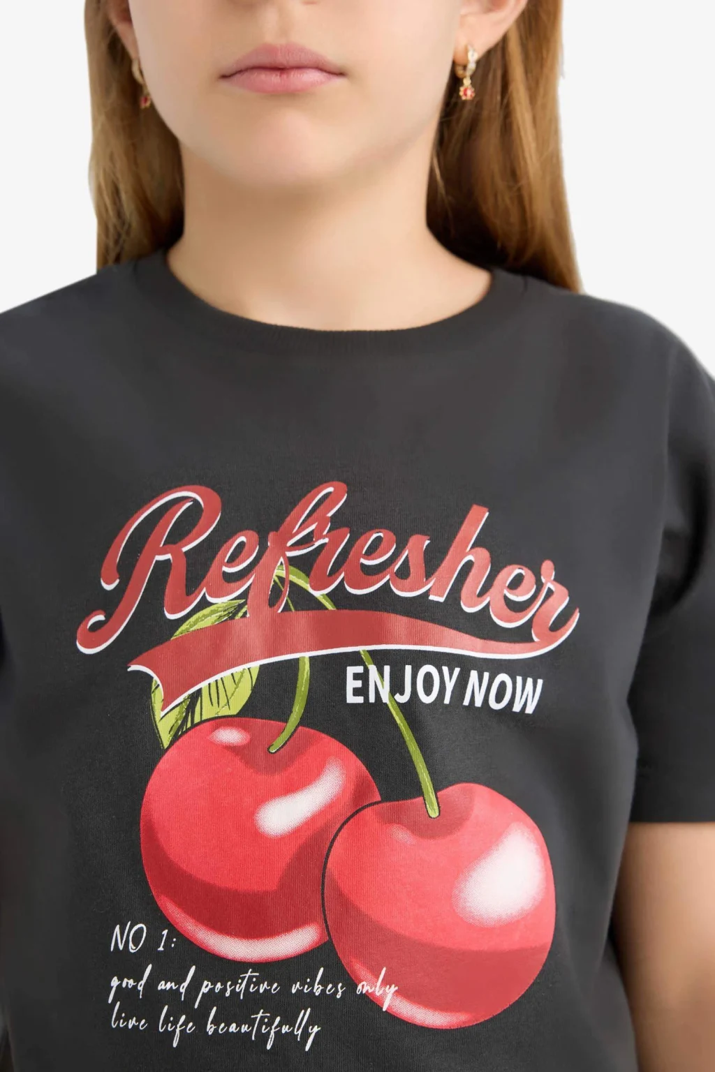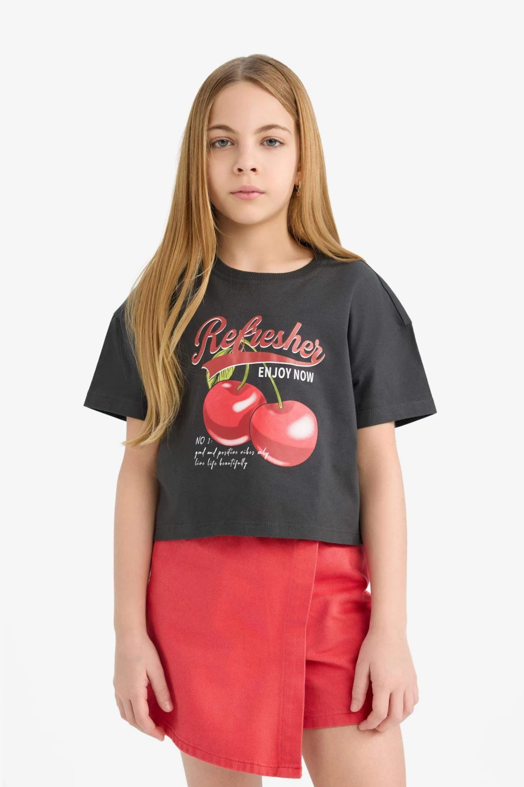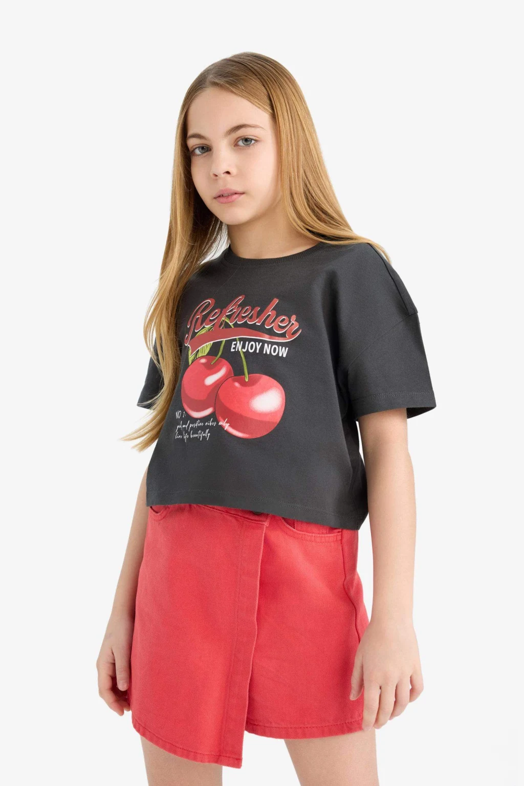 Kız çocuk bisiklet yaka baskılı kısa kollu tişört, sevimli baskıları ve rahat kesimiyle şıklığı ve konforu bir arada sunar. Yumuşak kumaşı, gün boyu rahat hareket etmelerini sağlar.