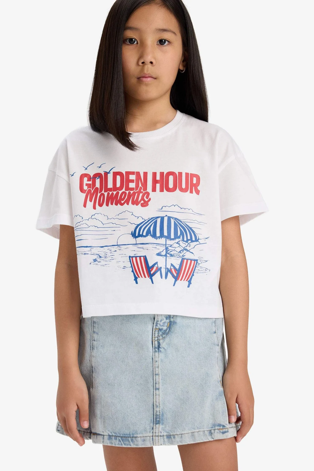 Kız çocuklar için boxy fit kesimli bisiklet yaka baskılı kısa kollu tişört, rahat ve şık bir günlük tercih. Yumuşak kumaşı ve canlı baskılarıyla miniklerin tarzını yansıtır.