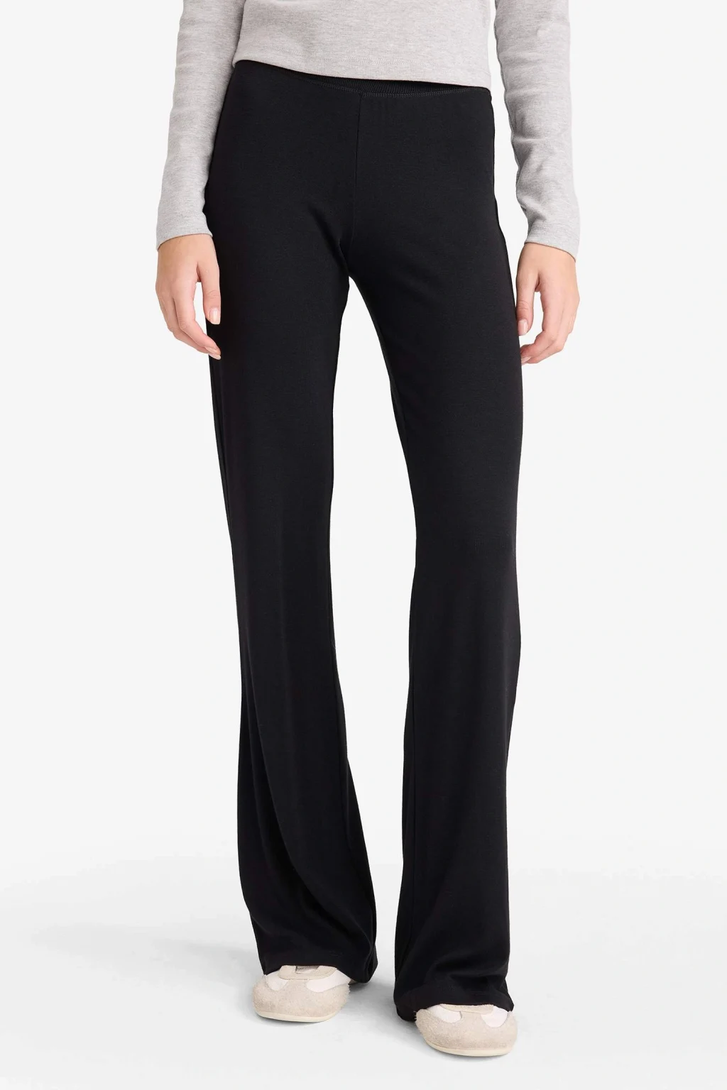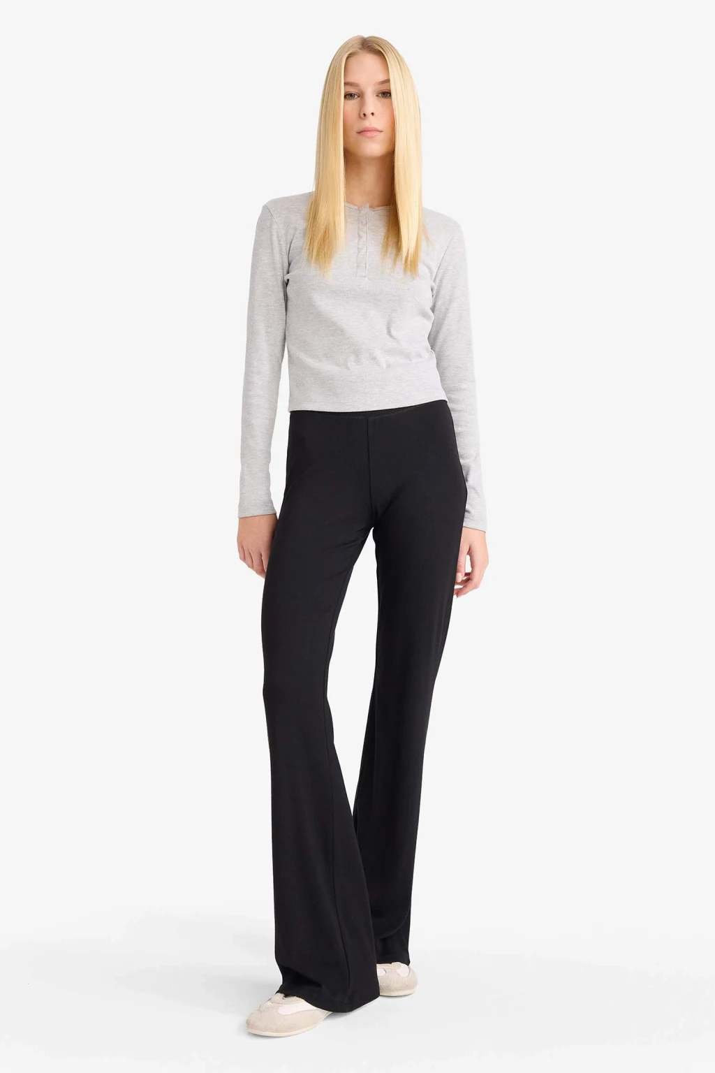 Coool Flare Fit Ribana Pantolon, esnek ribana dokusu ve geniş paça kesimiyle gün boyu konfor sunar. Modern ve rahat tarzıyla hem evde hem dışarıda stil sahibi bir görünüm sağlar.