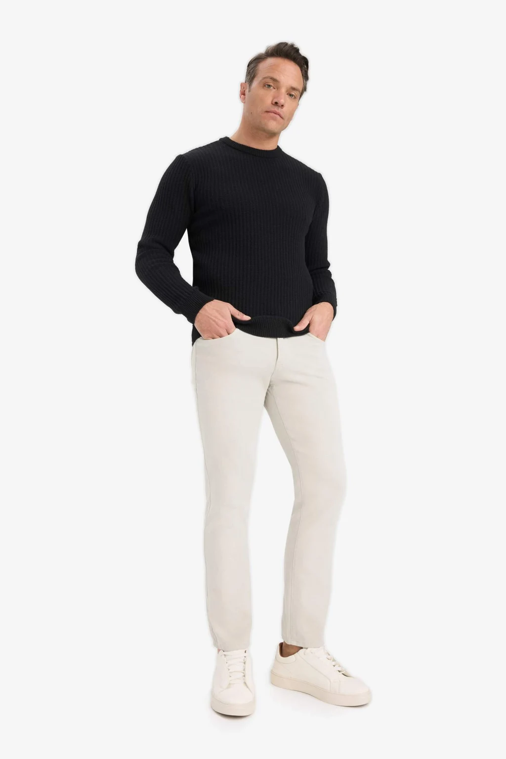 Standart fit bisiklet yaka triko kazak, dokulu yapısı ve sade tasarımıyla zamansız bir şıklık sunar. Yumuşak dokusuyla günlük kullanımda konforlu ve stil sahibi bir tercih olur.