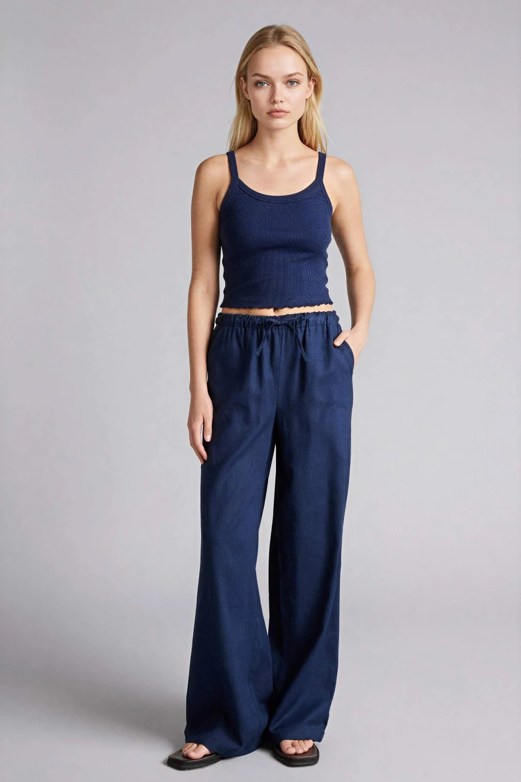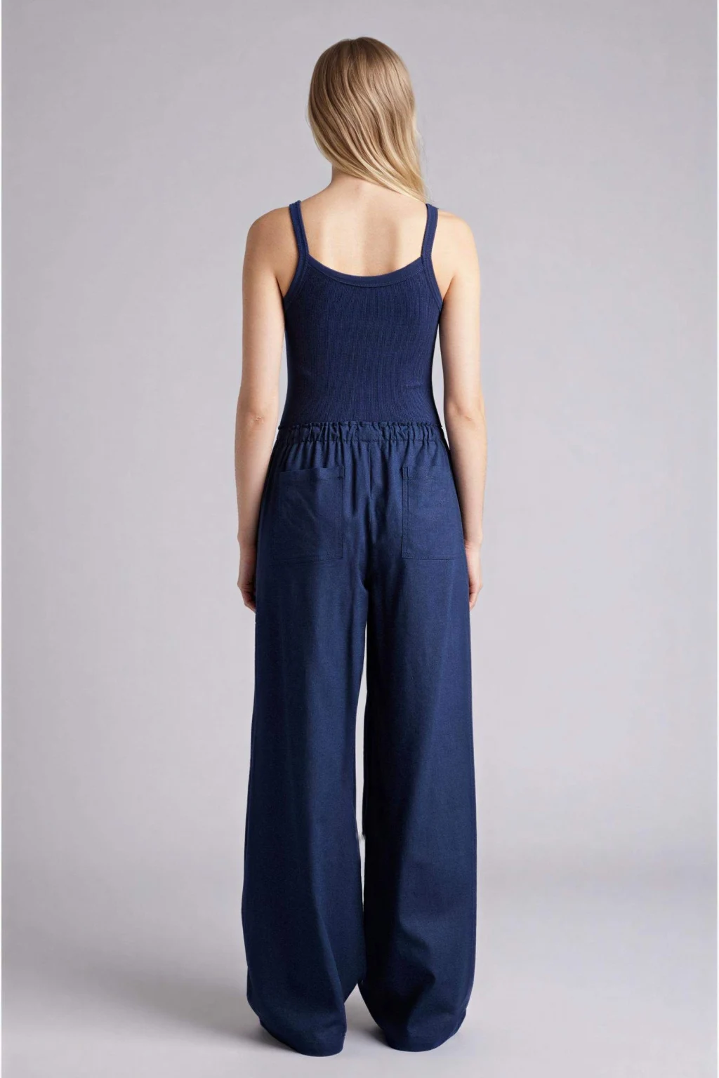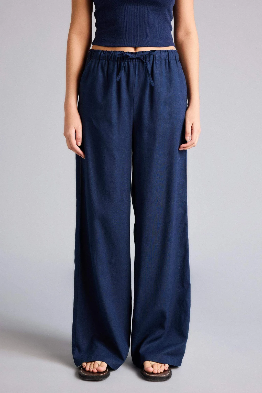 Defacto E1981AXNV125 Lacivert Wıde Leg Beli Lastikli Keten Karışımlı Pantolon