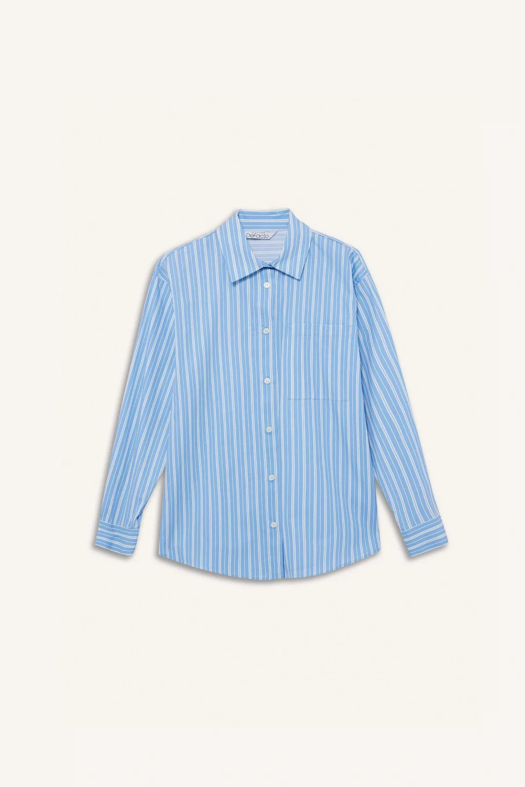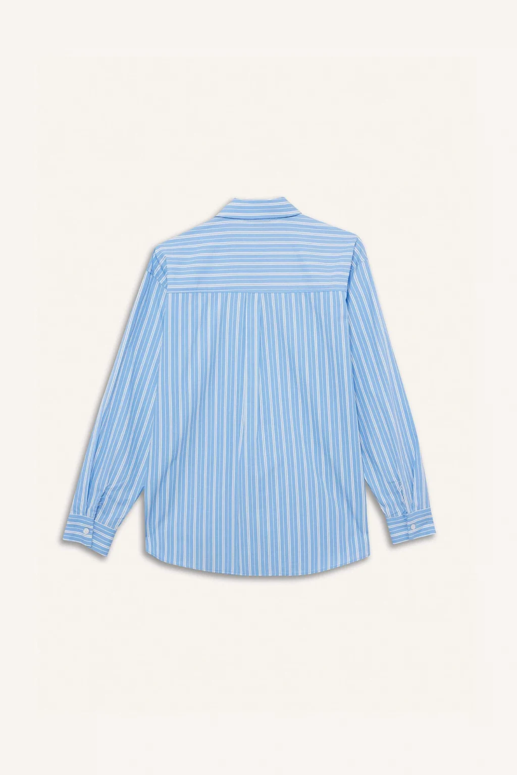Yetişkin kadınlara özel, temel çeşit uzun kollu gömlek. Oversize geniş kalıbı ve poplin kumaşıyla şıklığınızı tamamlayın. İlkbahar/Yaz mevsimine uygun mavi renk seçeneği bulunmaktadır. Gömlek yaka detayıyla fark yaratın.
