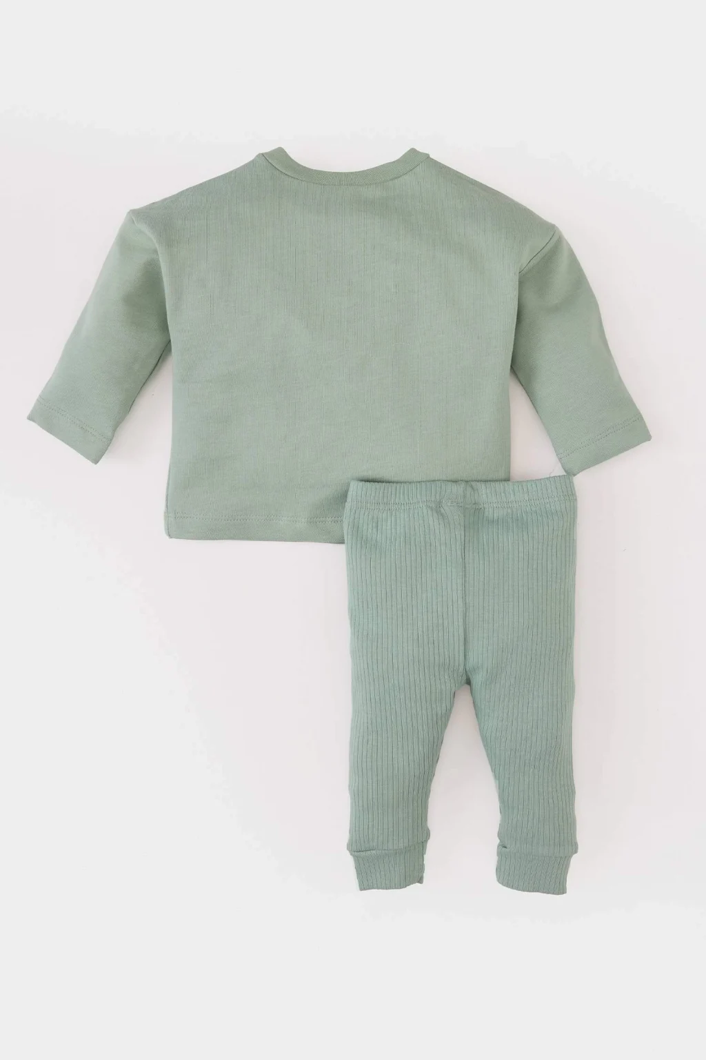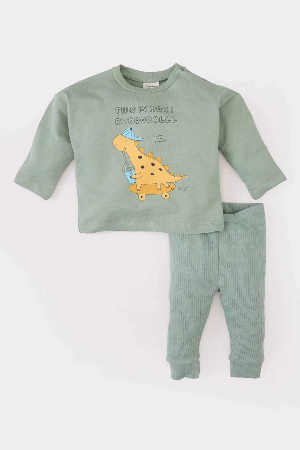 Erkek bebek 2'li takım, dinazor baskılı uzun kollu tişört ve beli lastikli altıyla hem konforlu hem de eğlenceli bir seçenek sunar. Yumuşak kumaşı ve esnek bel kısmı sayesinde bebeklerin hareket özgürlüğünü kısıtlamaz. Dinazor desenleriyle miniklere keyifli bir stil sunar.