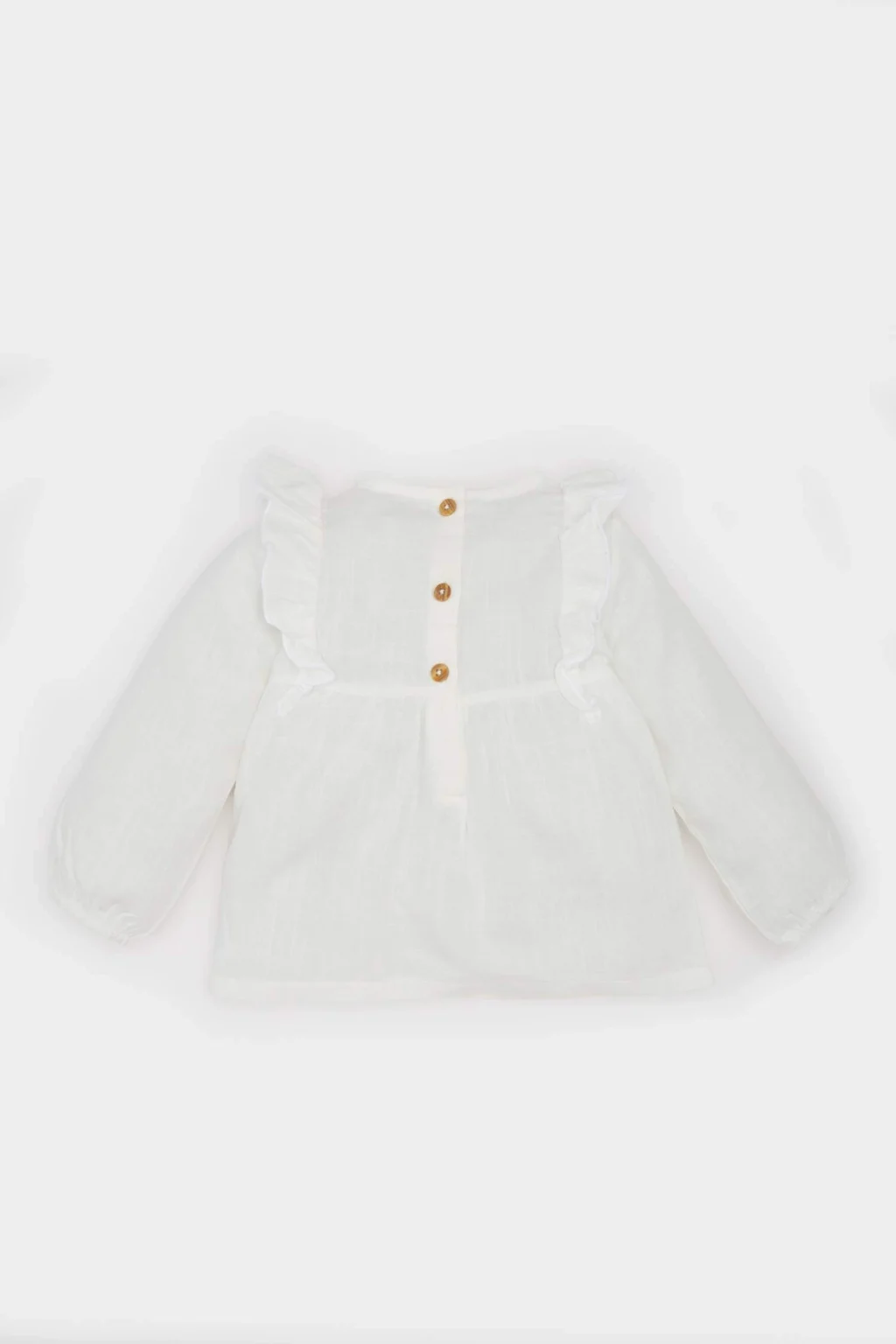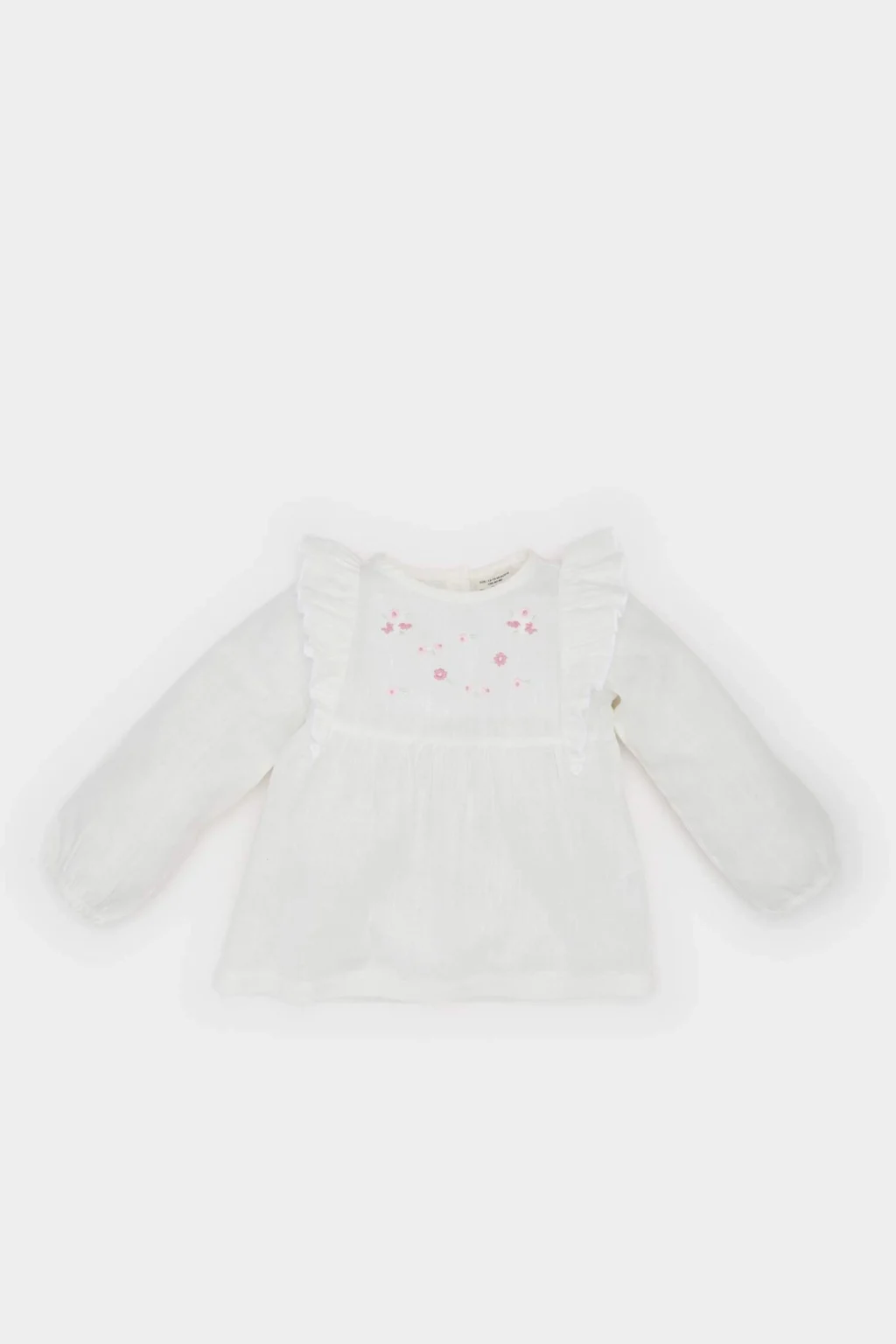 Kız Bebek Bisiklet Yaka Floral Flamlı Poplin Uzun Kollu Gömlek, zarif floral deseni ve flamlı detaylarıyla şıklık sunar. Hafif poplin kumaşı sayesinde rahatlıkla giyilebilir ve uzun kollu tasarımı ile serin günlerde mükemmel bir tercih olur. Hem şık hem de konforlu bir seçenek!