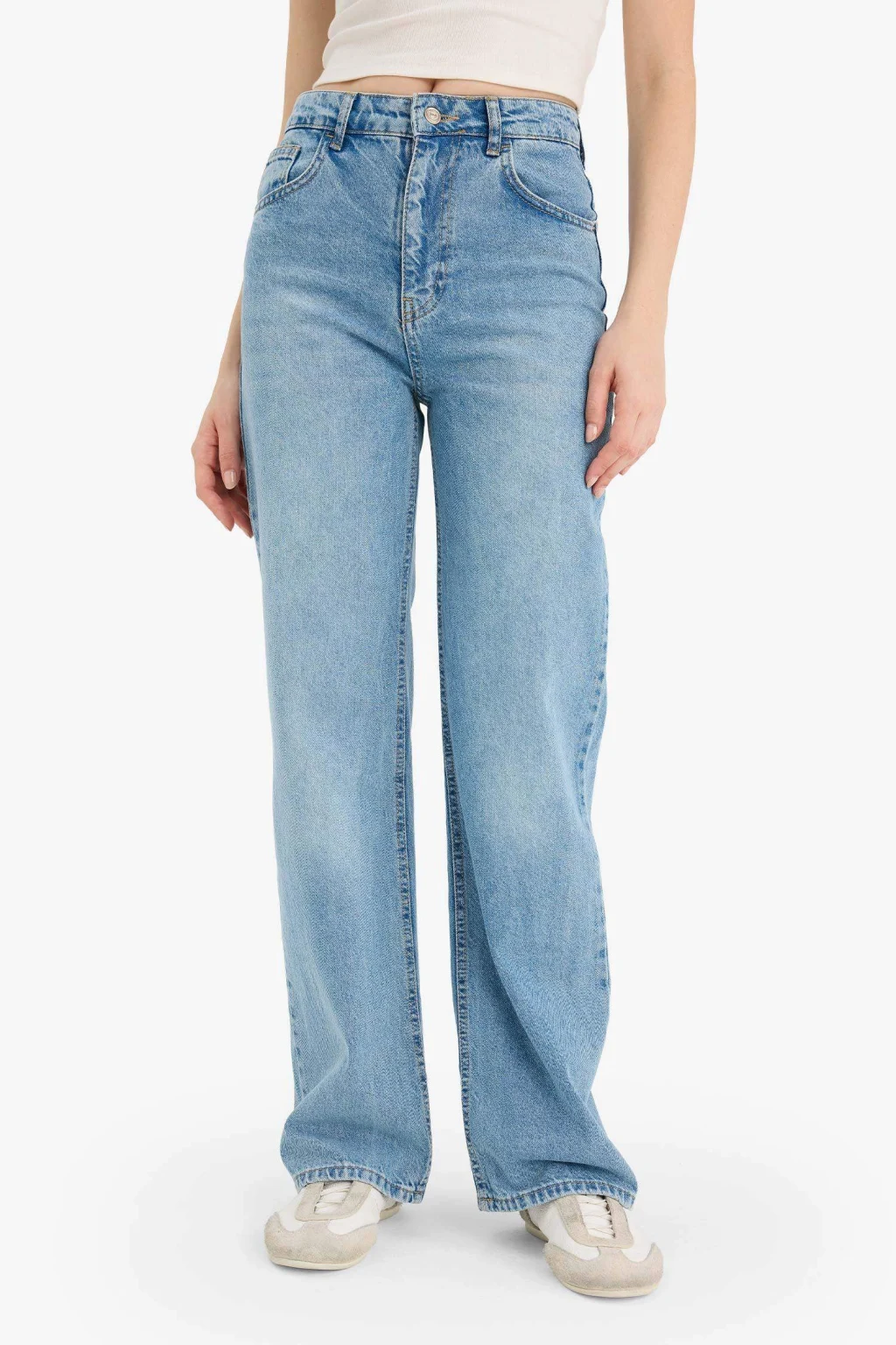 Defacto H1133AXNM34 Mavi Mıa Flare Fıt Normal Bel İspanyol Paça Uzun Jean Pantolon