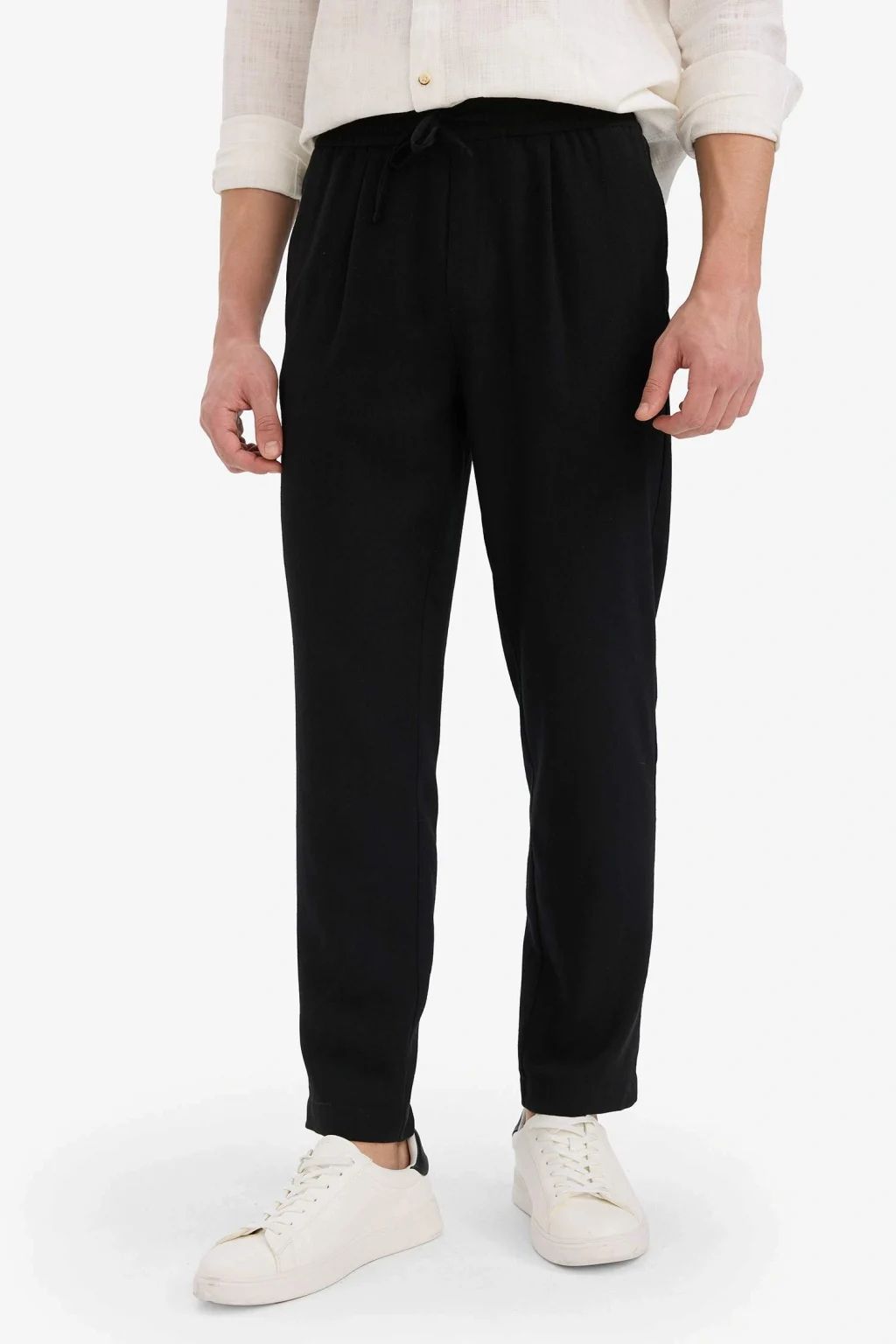 Defacto E4790AXBK27 Siyah Relax Fit Kısa Paça Keten Görünümlü Beli Bağcıklı Lastikli Cepli Pantolon
