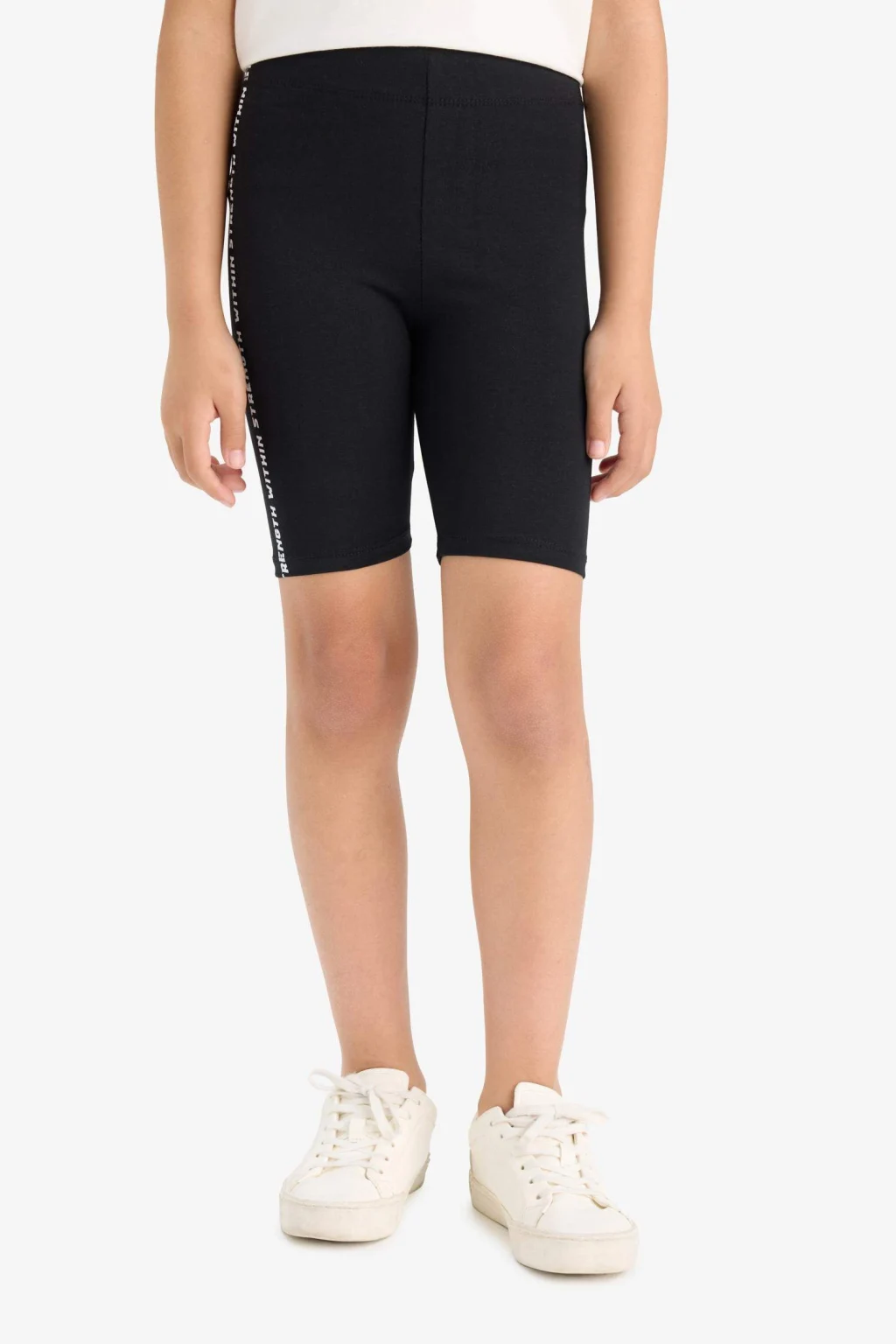 Kız çocuklar için yaz aylarına uygun siyah baskılı tayt. Biker kalıplı ve kısa boyuyla örme alt grupları için ideal bir seçim. Mağazamızda bulabilirsiniz.