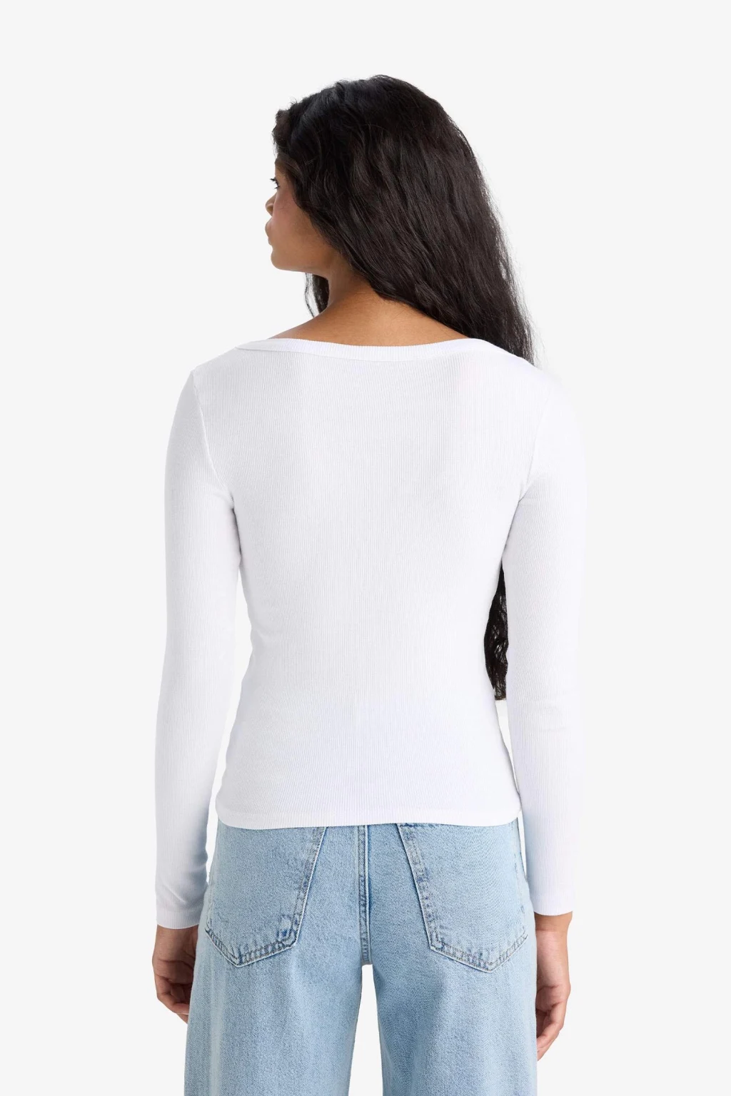 Slim fit ve dar kesimiyle vücuda oturan bu basic yuvarlak yaka tişört, fitilli kaşkorse dokusuyla şıklık ve rahatlığı bir arada sunar. Uzun kollu tasarımıyla her mevsime uygun, zamansız bir temel parça.