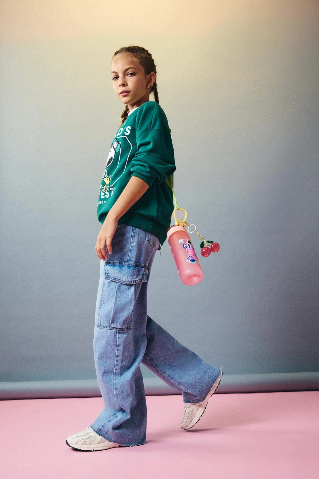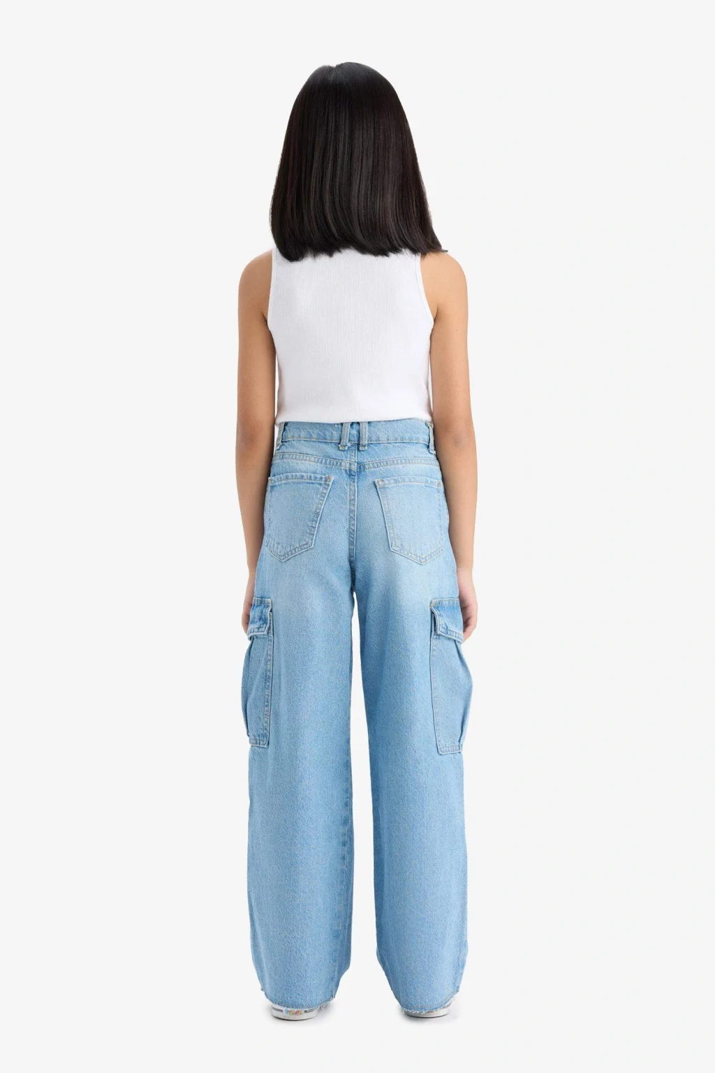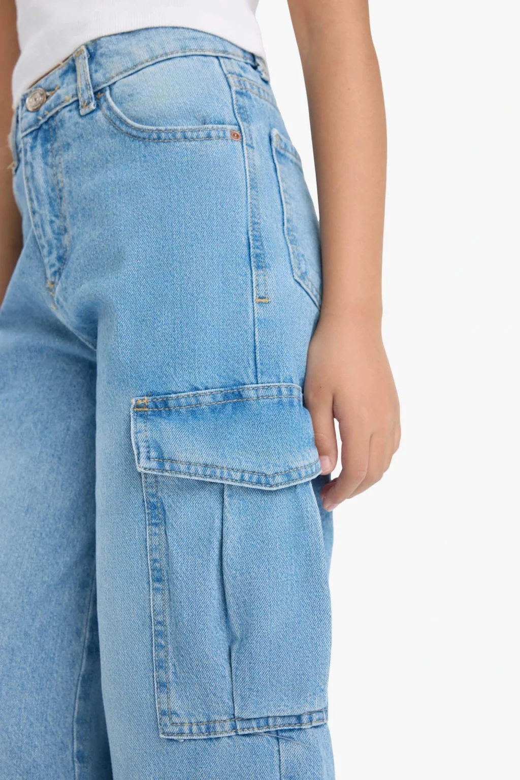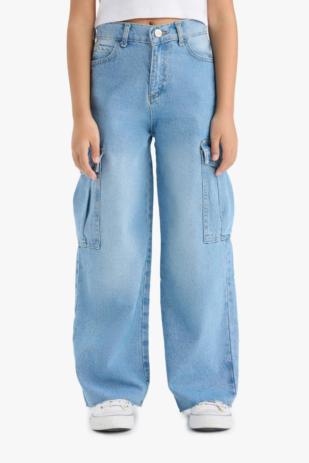 Kız çocuk wide leg kargo geniş paça jean pantolon, rahat kesimi ve kullanışlı cepleriyle hem şık hem fonksiyonel bir tarz sunar. Günlük aktivitelerde konforlu bir seçim.