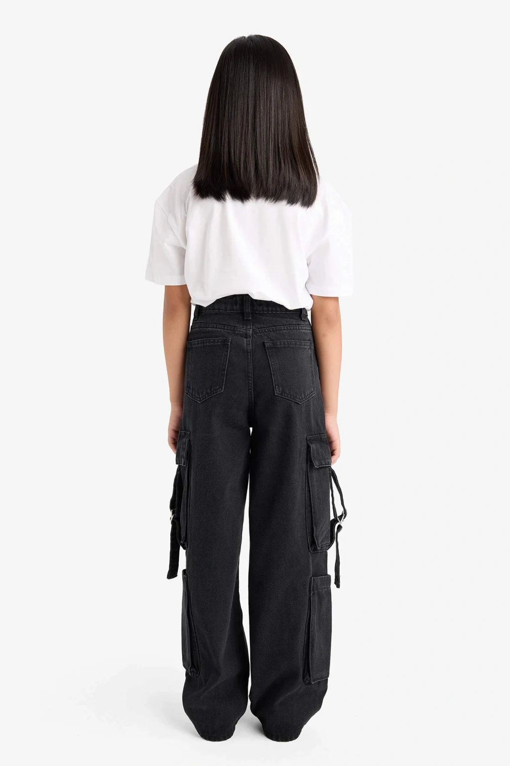 Modern tarzı ve rahat kesimiyle dikkat çeken wide leg kargo jean pantolon, kız çocukların stilini tamamlıyor. Geniş paça yapısı ve fonksiyonel cepleriyle hem şık hem de kullanışlı bir seçenek sunuyor.
