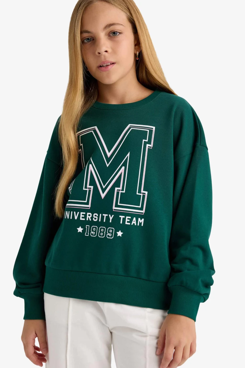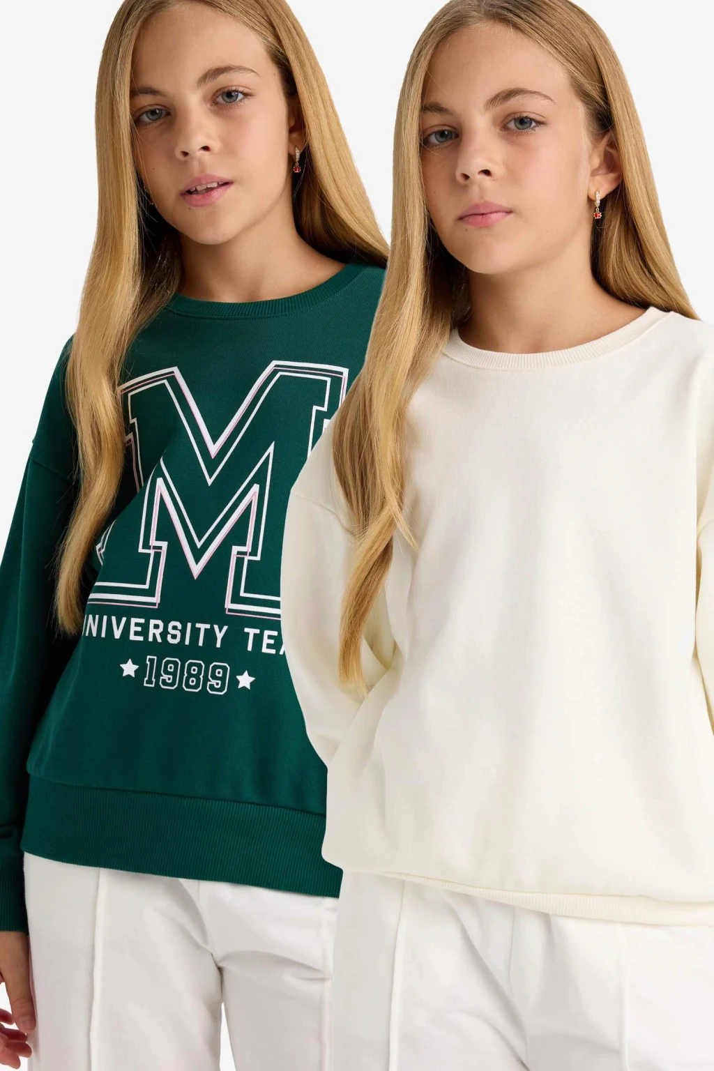 Kız çocuklar için relax fit bisiklet yaka baskılı 2'li sweatshirt seti, yumuşak kumaşı ve rahat kesimiyle konforlu bir kullanım sunar. Canlı baskılarıyla stiline hareket katar.