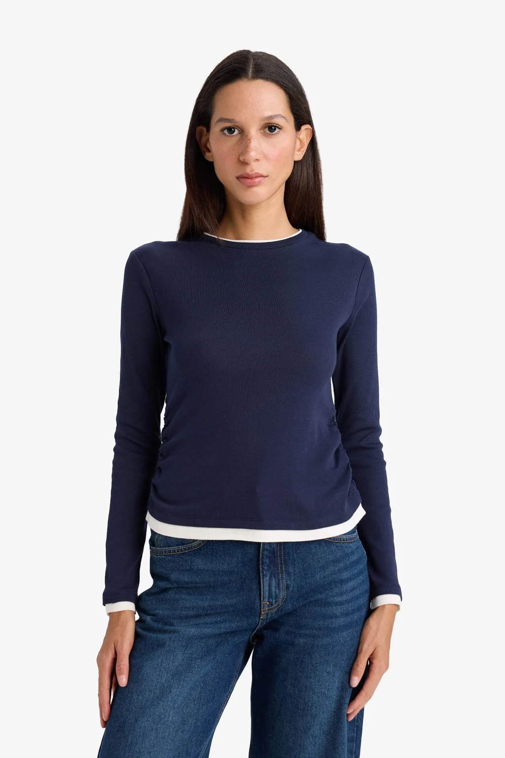 Defacto E6548AXNV245 Lacivert Slim Fit Ribana Tişört