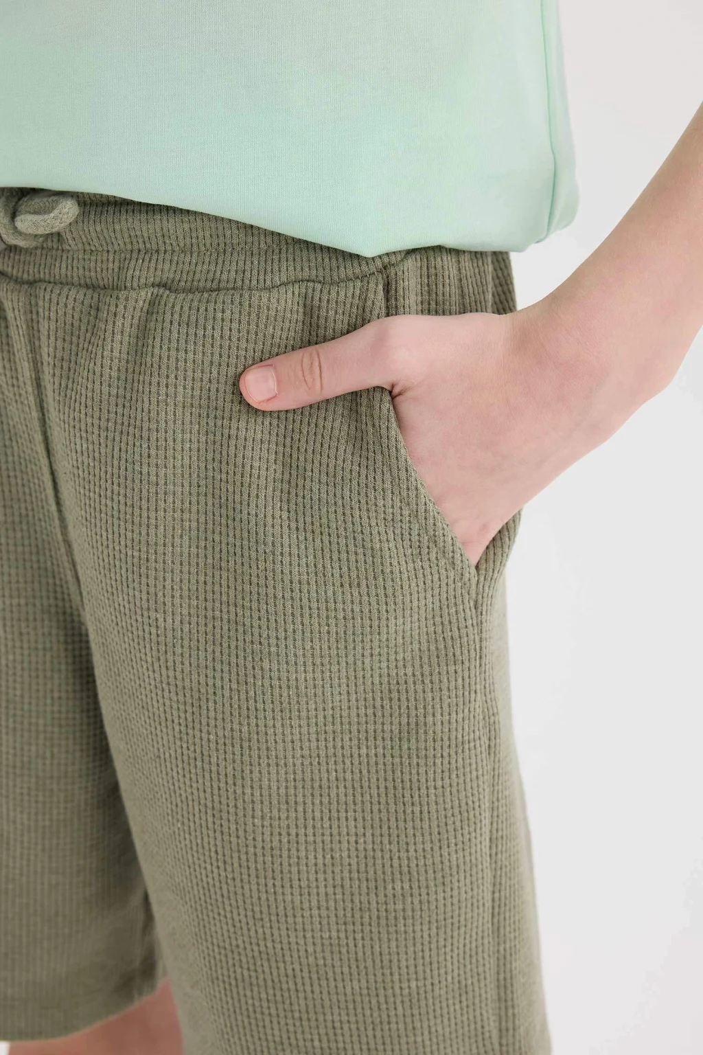 Erkek çocuklar için şıklığı ve rahatlığı bir arada sunan waffle şort, hafif ve nefes alabilen yapısıyla sıcak havalarda rahatça giyilebilir. Esnek bel bandı sayesinde gün boyu konforlu bir kullanım sağlar.