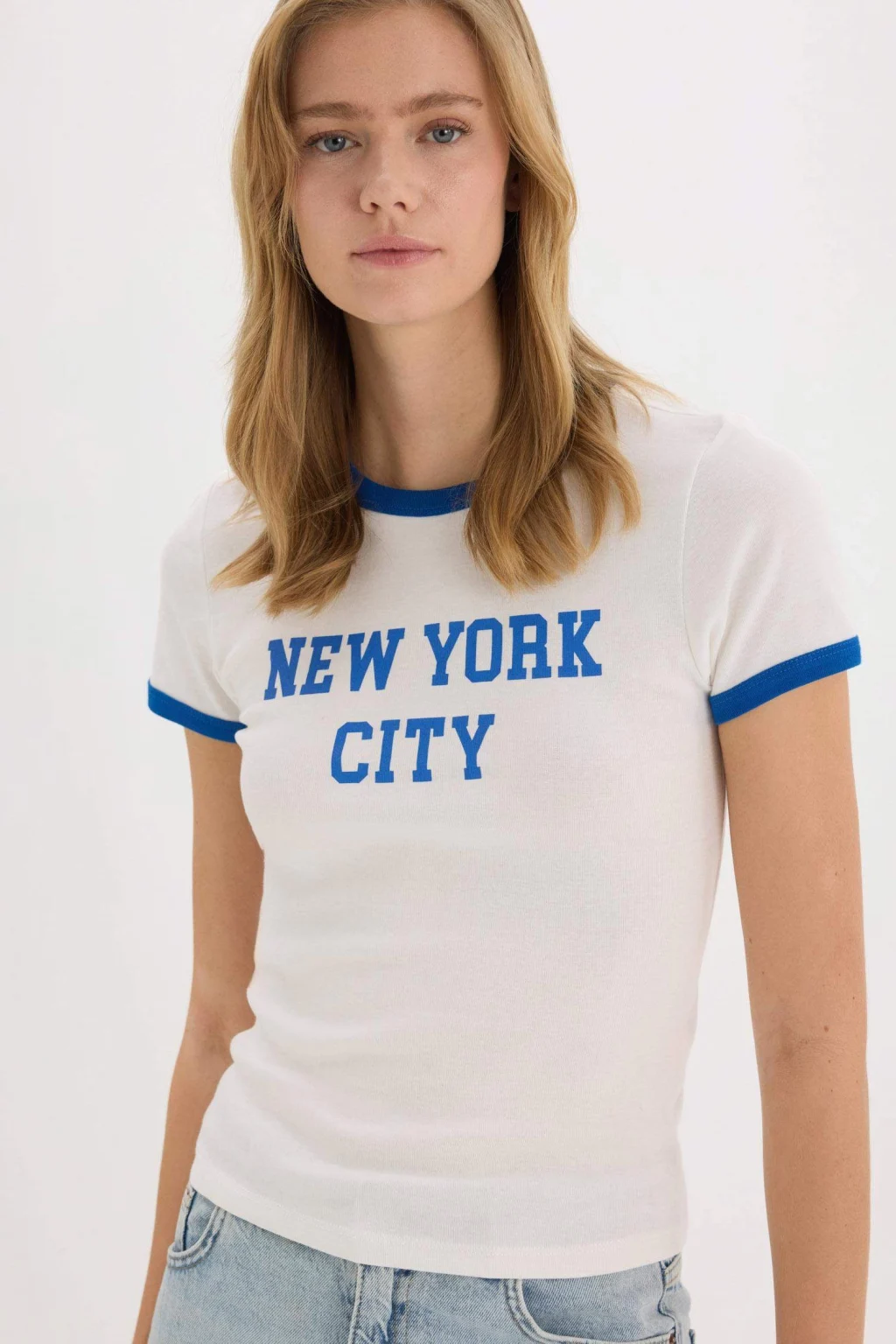 Yetişkin Kadınlar için Slogan Desenli Beyaz Kısa Kollu Tişört. Sürdürülebilir ribana kumaştan üretilmiş, regular fit kesim. Kış mevsimine uygun şık bir seçenek. Bisiklet yaka detayıyla tarzınızı yansıtın. Ideal örme kıyafetler koleksiyonunuz için.