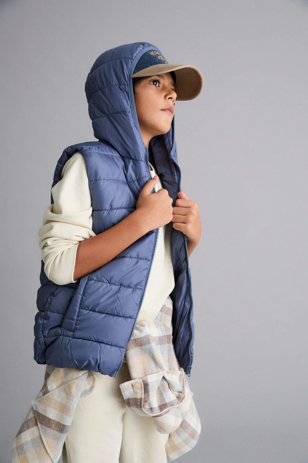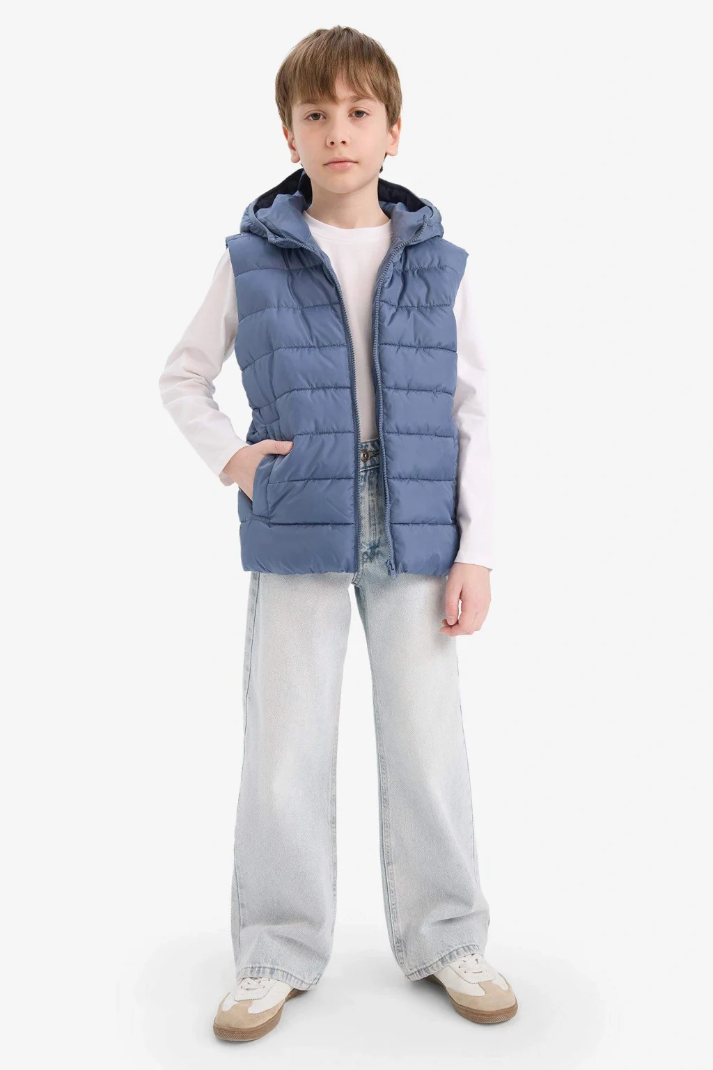 Su itici kapüşonlu fermuarlı şişme yelek, erkek çocuklarına hafif ve sıcak bir koruma sağlar. Hareket özgürlüğü sunan tasarımıyla dış mekan aktiviteleri için ideal bir seçenektir.