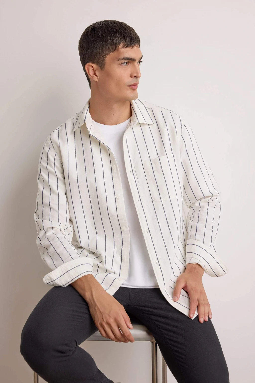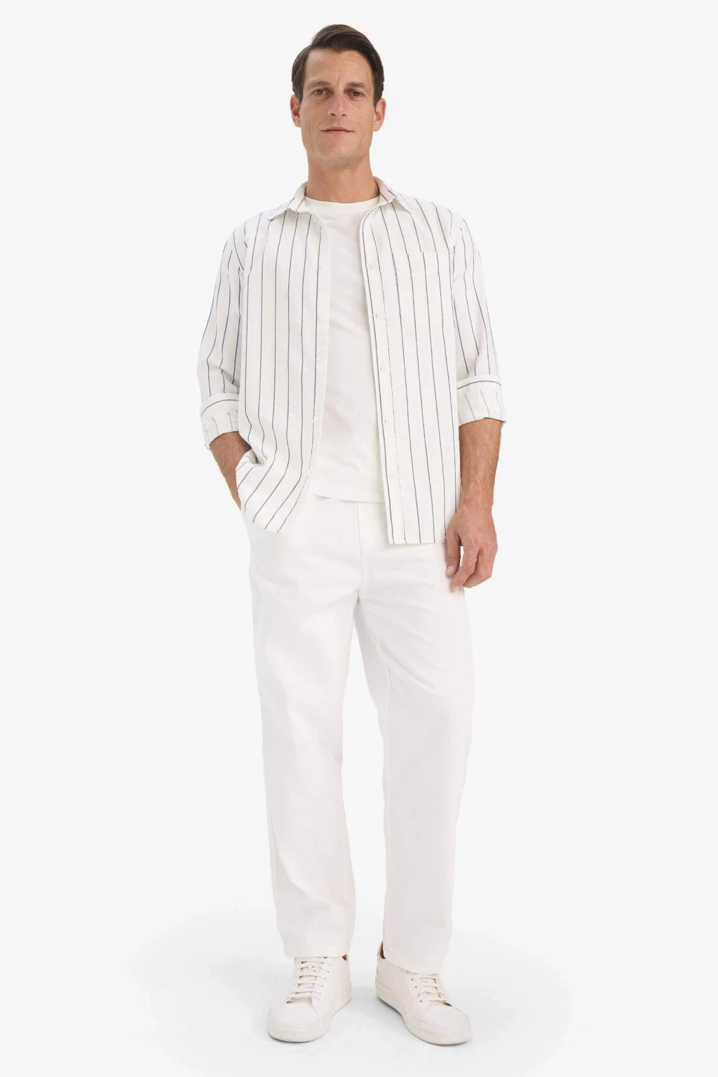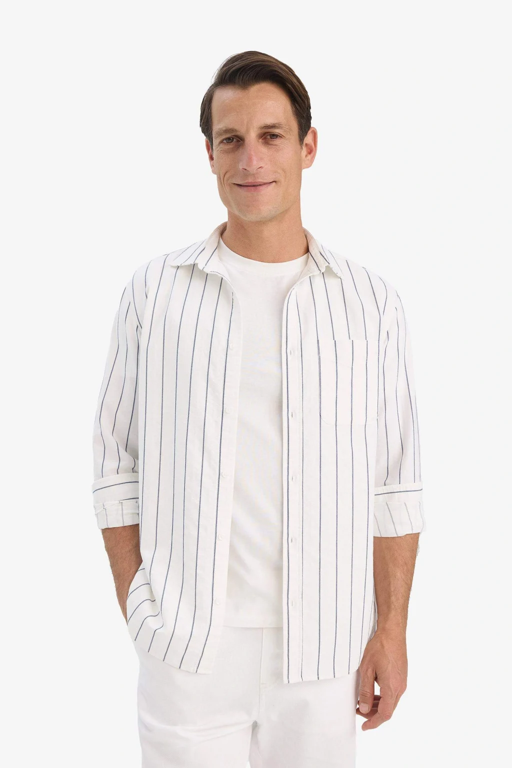 Regular fit polo yaka pamuklu uzun kollu çizgili gömlek, nefes alabilen pamuklu kumaşı ve klasik çizgili deseniyle şıklığı ve konforu bir arada sunar. Polo yaka detayıyla modern ve zarif bir görünüm kazandırır.
