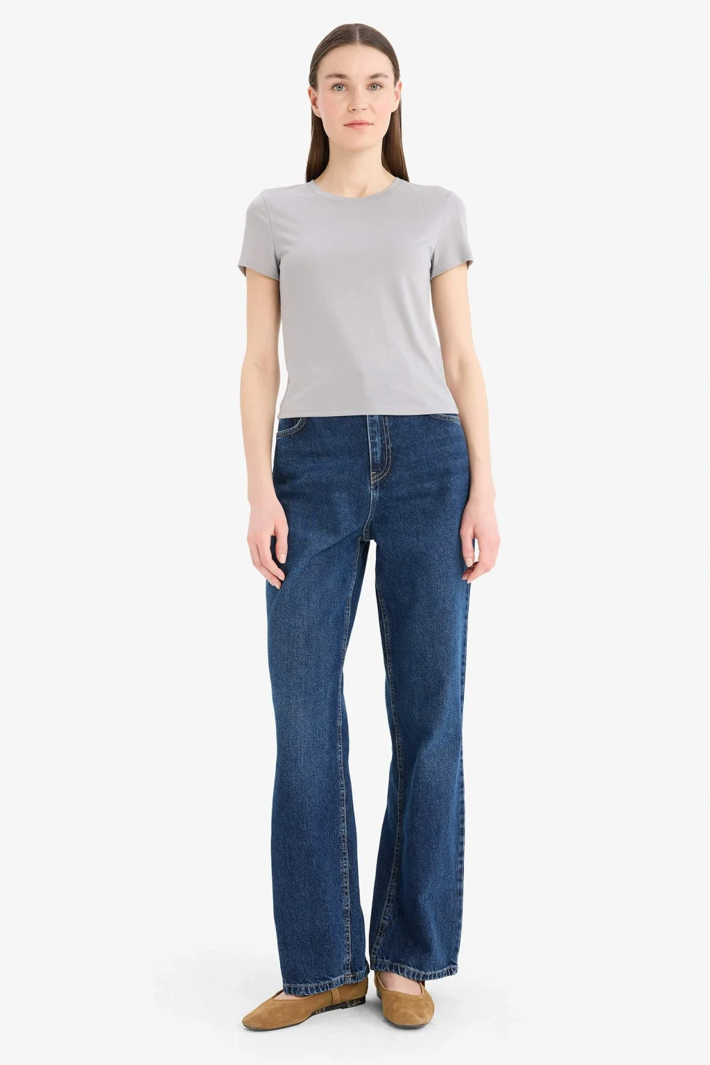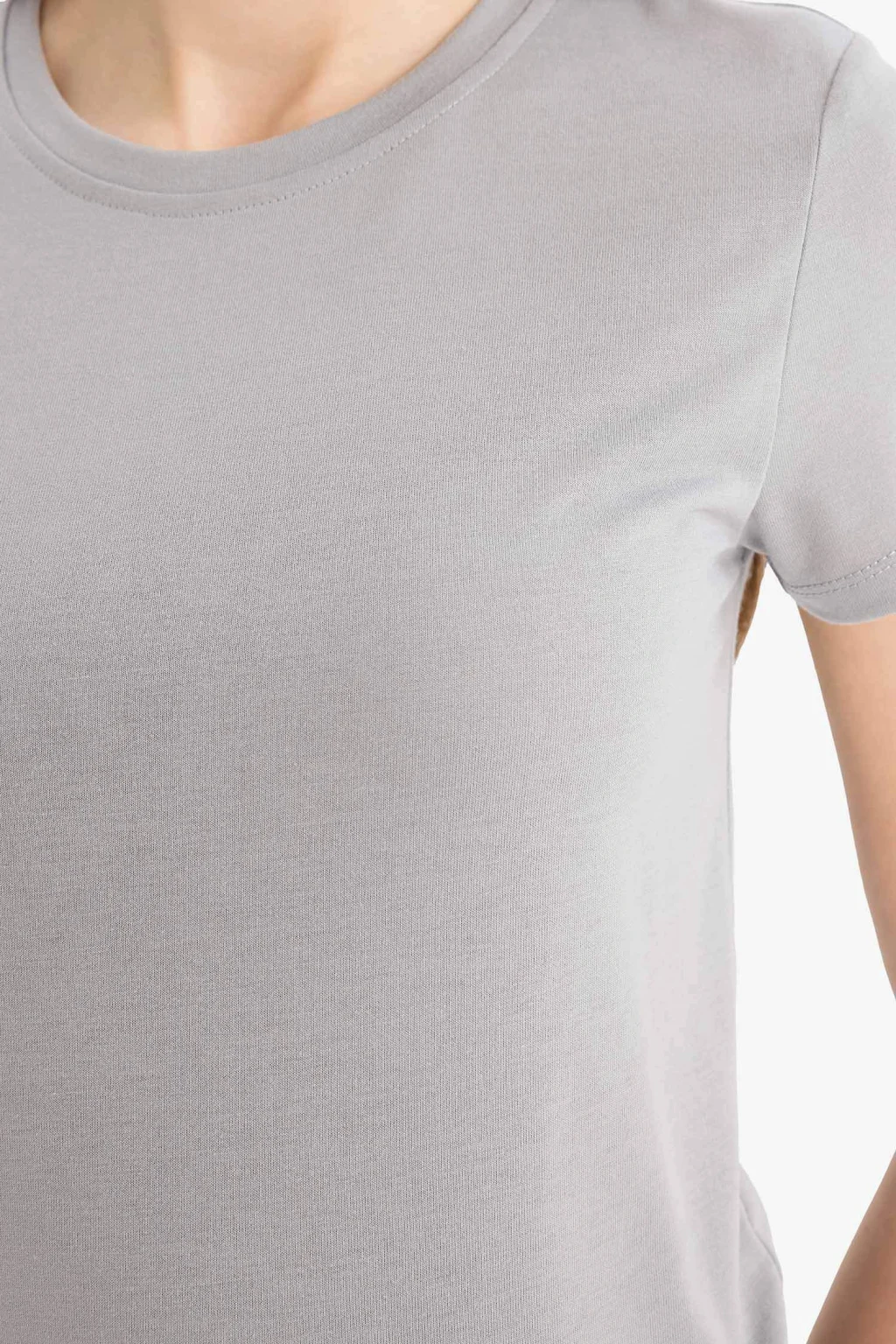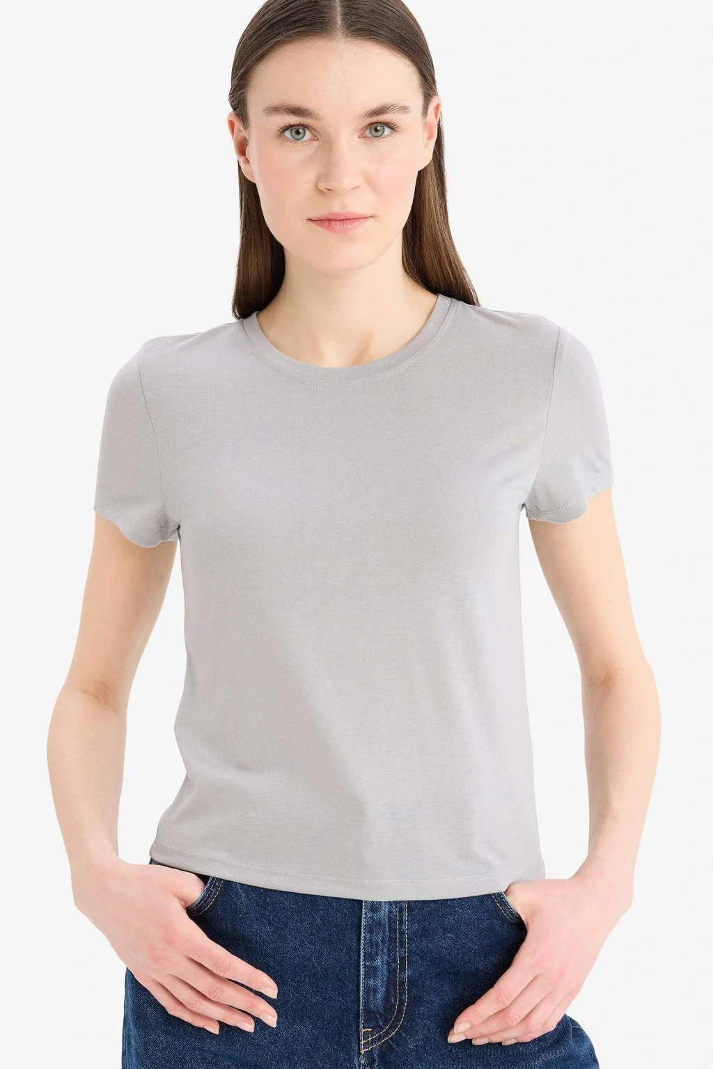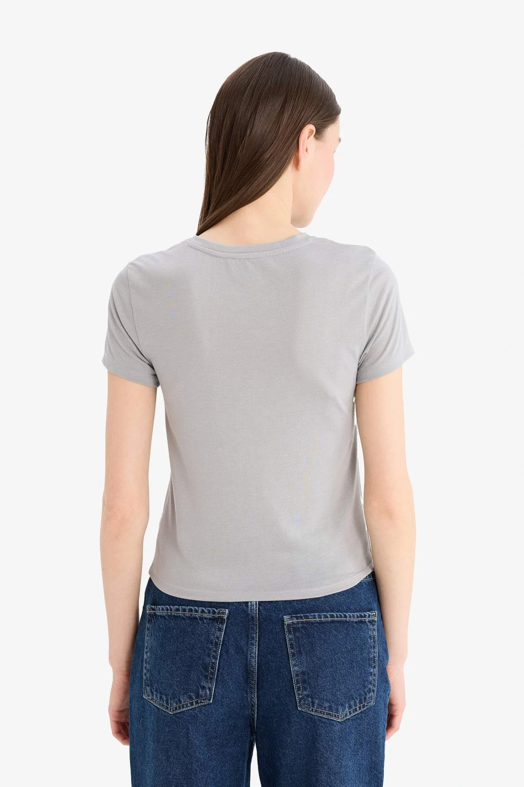Derin V Yaka Detaylı Gri Kısa Kollu Kadın Tişört, stillerinizi tamamlamak için mükemmel seçim. İlkbahar/Yaz koleksiyonunun vazgeçilmezi, örme tişört kalıbı ile vücuda oturur. Bisiklet yaka detayıyla modern bir dokunuş sunuyor. Şıklığı ve rahatlığı bir arada arayanlar için ideal.