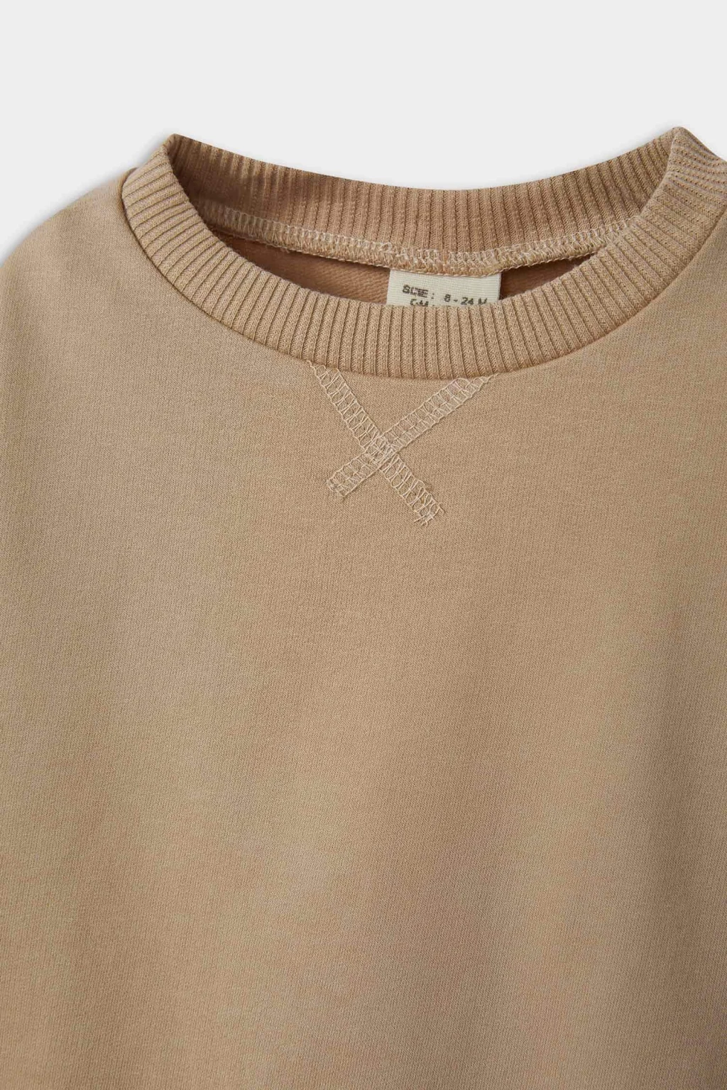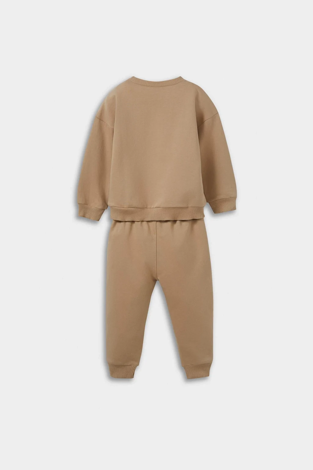 Defacto E8430A5BG109 Bej Erkek Bebek 2'li Takım Basic Düz Sweatshirt Eşofman Altı