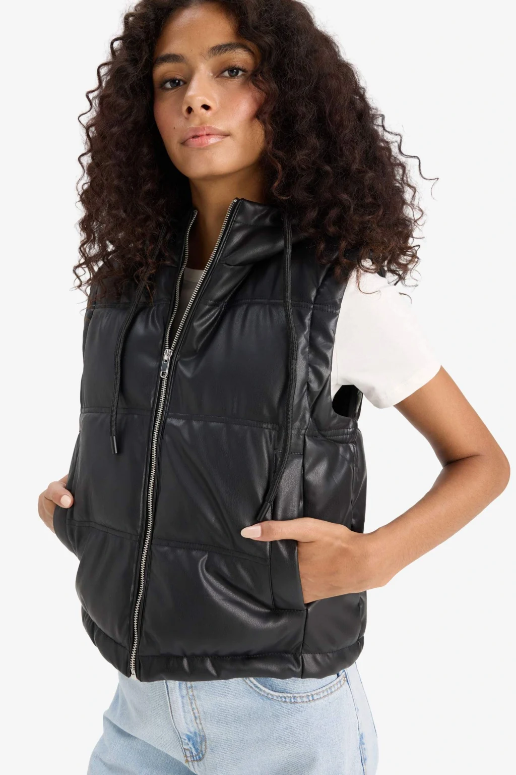 Regular Fit Kapüşonlu Suni Deri Yelek, modern tasarımı ve suni deri dokusuyla stil sahibi bir görünüm sunar. Kapüşon detayıyla sportif bir hava katarken, mevsim geçişlerinde şık ve kullanışlı bir tamamlayıcıdır.