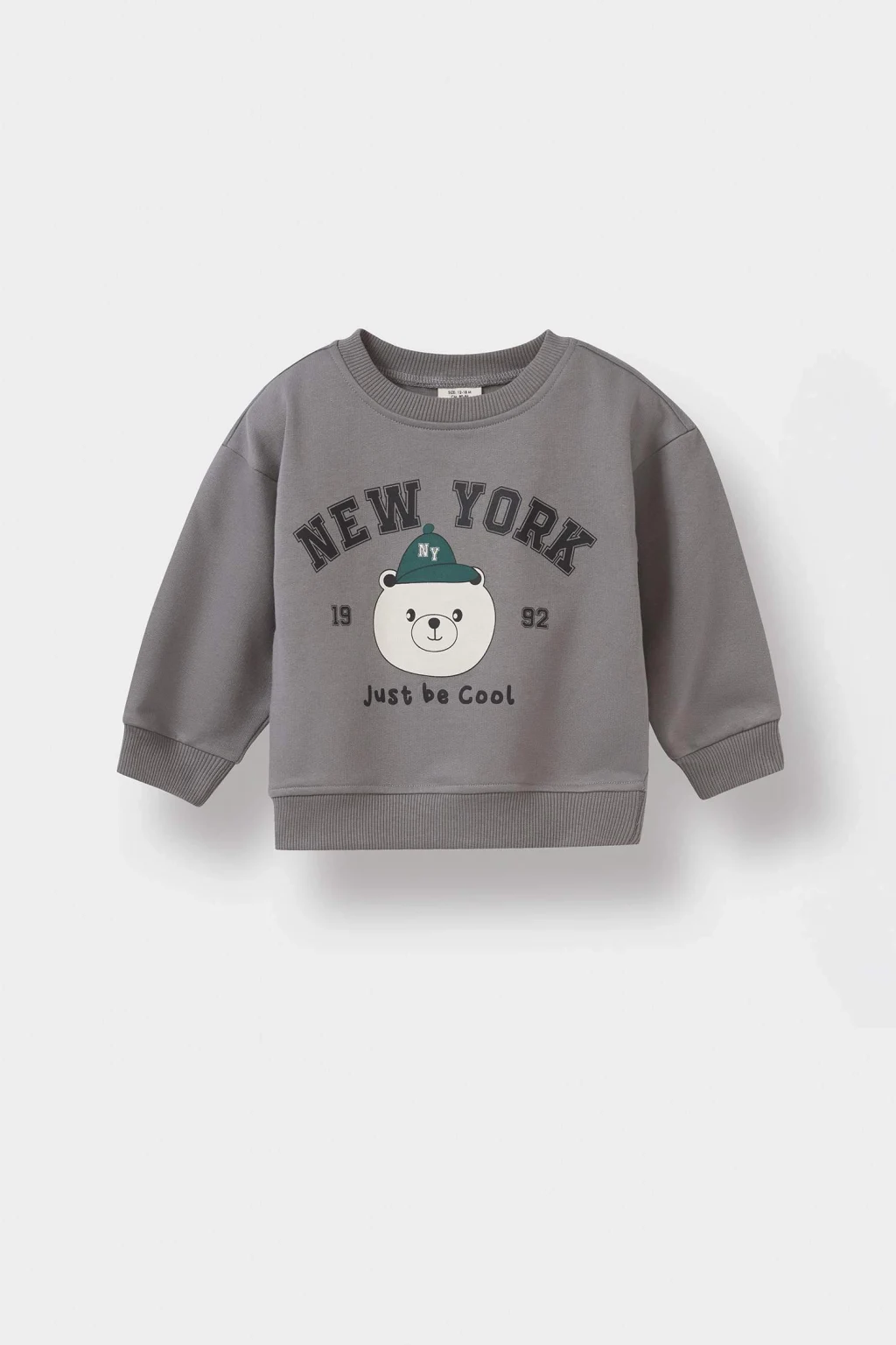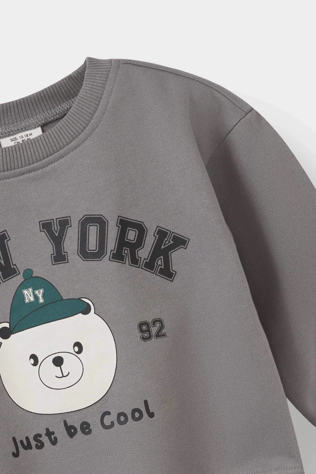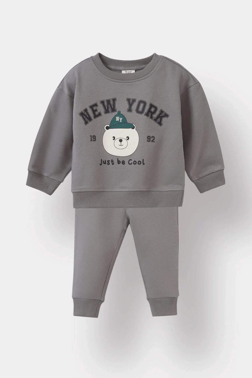 Erkek Bebek 2'li Takım, rahat kesimli baskılı sweatshirt ve eşofman altından oluşur. Yumuşak kumaşıyla hassas cilde uyum sağlar, hareket özgürlüğü sunar. Günlük kullanım için ideal, şık ve konforlu bir set.