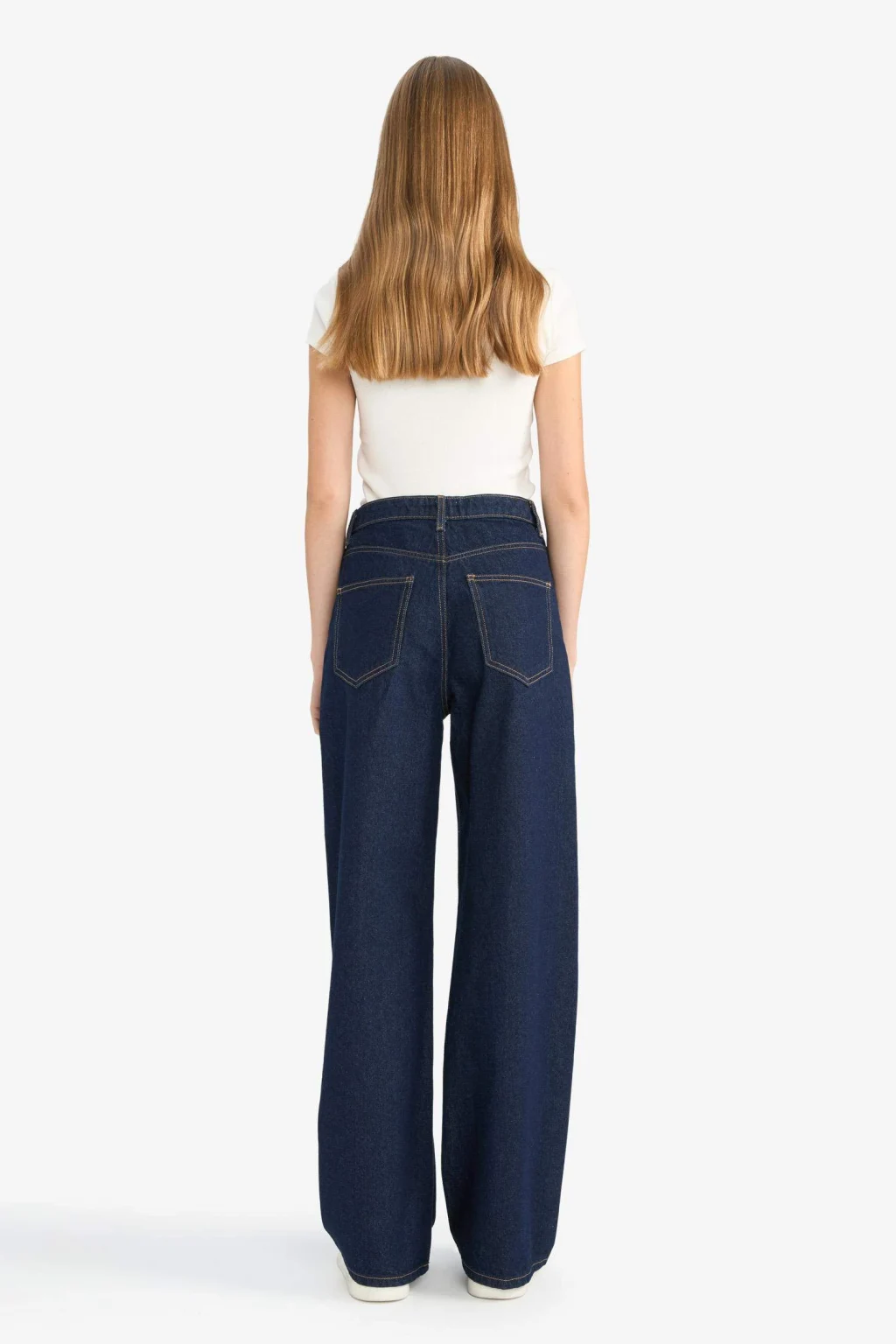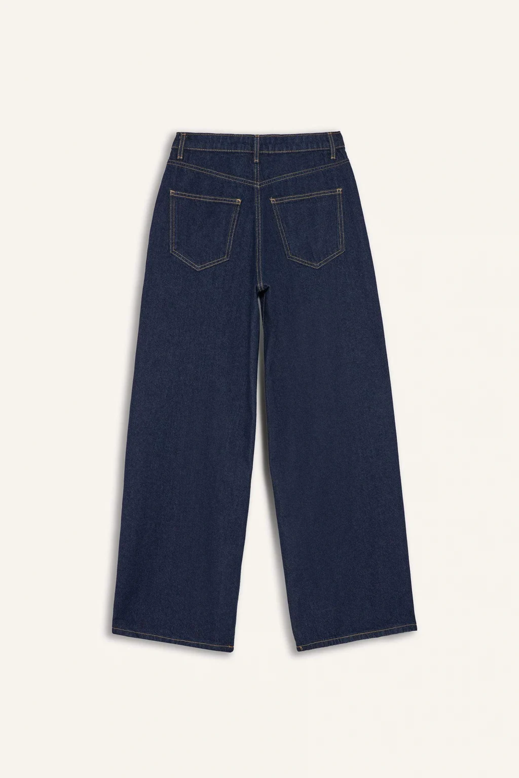 Wide Leg Normal Bel Düz Paça Uzun Jean Pantolon, bol kesimi ve düz paça detayıyla rahatlığı ve şıklığı bir arada sunar. Normal bel yapısı sayesinde her bedene uyum sağlar, günlük kombinlerin vazgeçilmezi olur.