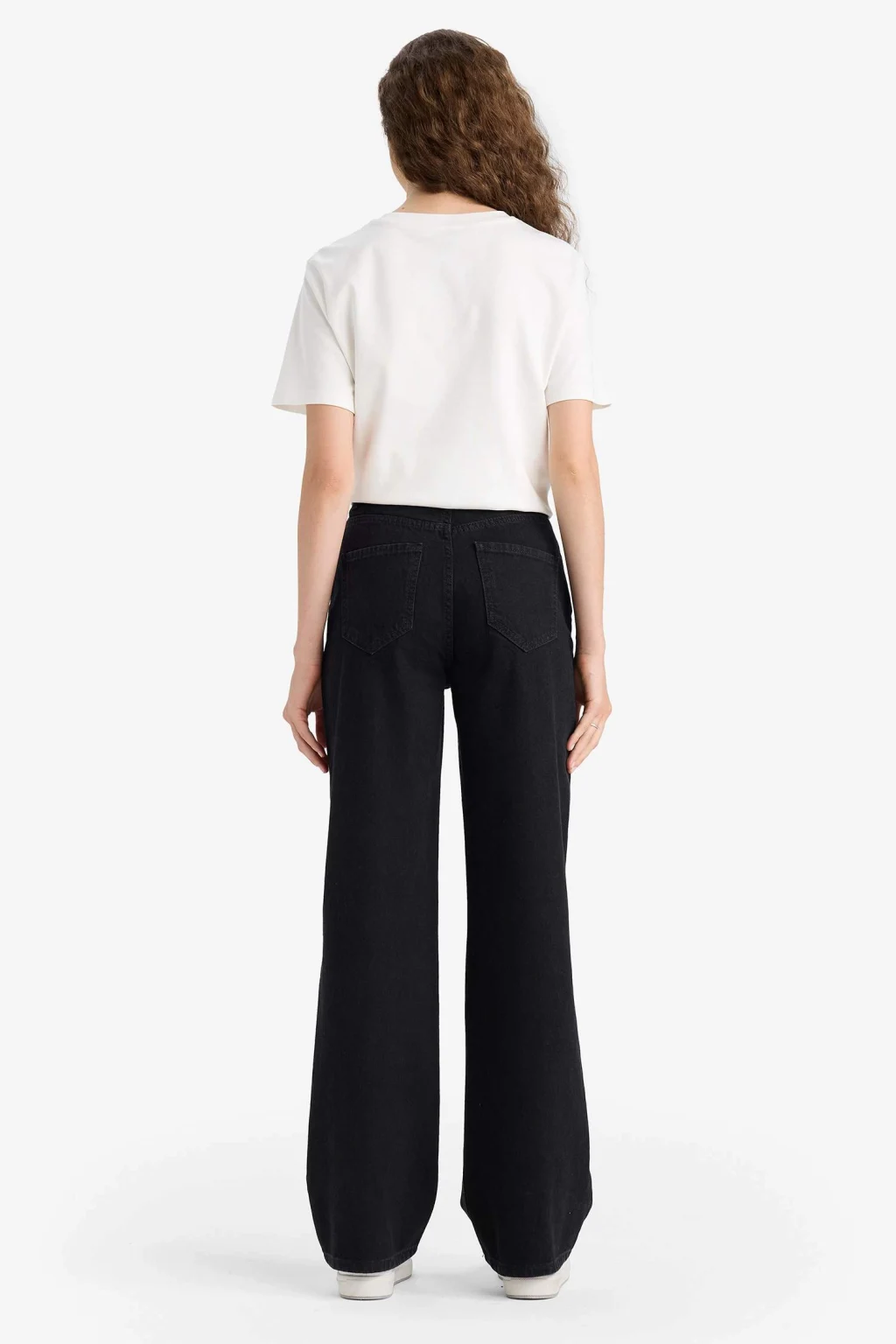 Defacto E9125 Siyah 90's Wide Leg Yüksek Bel Uzun Jean Pantolon