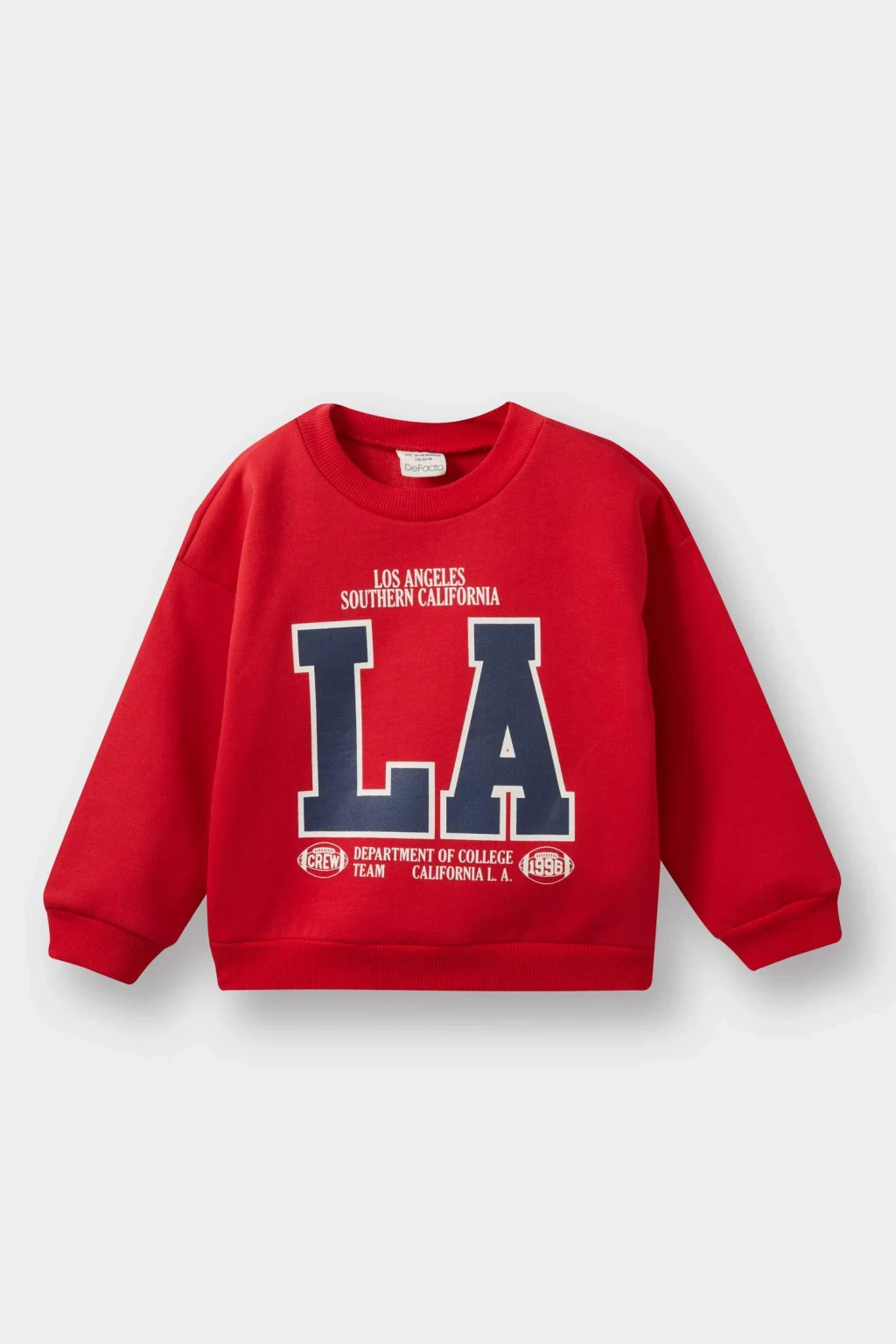 İçi yumuşak tüylü erkek bebek sweatshirtü, bisiklet yaka tasarımı ve eğlenceli baskısıyla hem sıcak tutar hem şık görünüm sağlar. Rahat kesimiyle günlük kullanıma uygundur. Miniklerin konforu için ideal bir tercih.