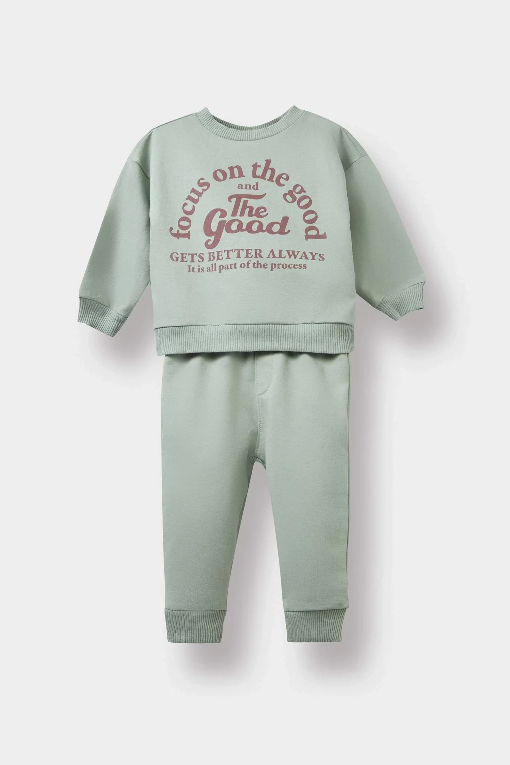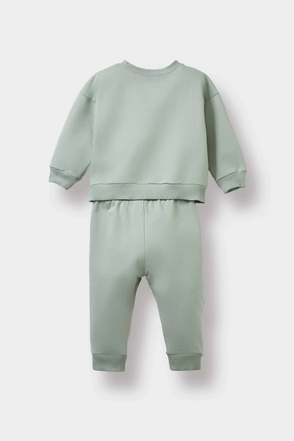 Erkek bebekler için hazırlanan bu 2'li takım, sevimli baskılı sweatshirt ve beli lastikli eşofman altıyla hem şık hem konforlu bir görünüm sunar. Yumuşak kumaşı sayesinde minikler gün boyu rahatça hareket edebilir.