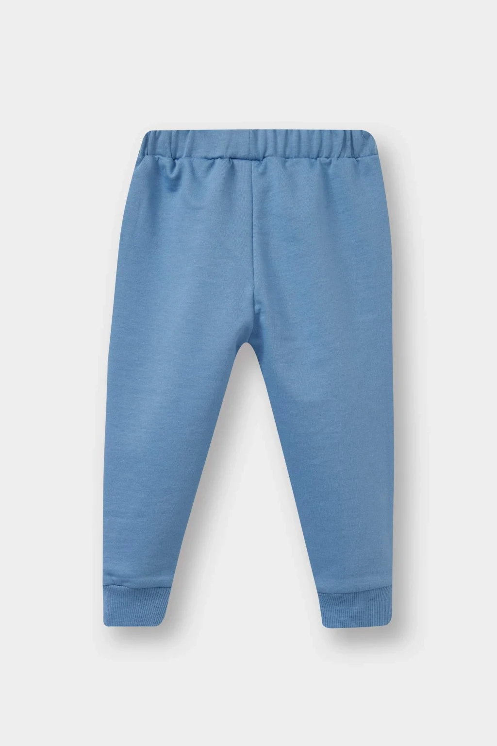 Erkek bebek beli lastikli baskılı eşofman altı, yumuşak ve esnek kumaşıyla gün boyu rahatlık sağlar. Renkli baskı detaylarıyla hareketli ve eğlenceli bir görünüm sunar, günlük kullanım için idealdir.