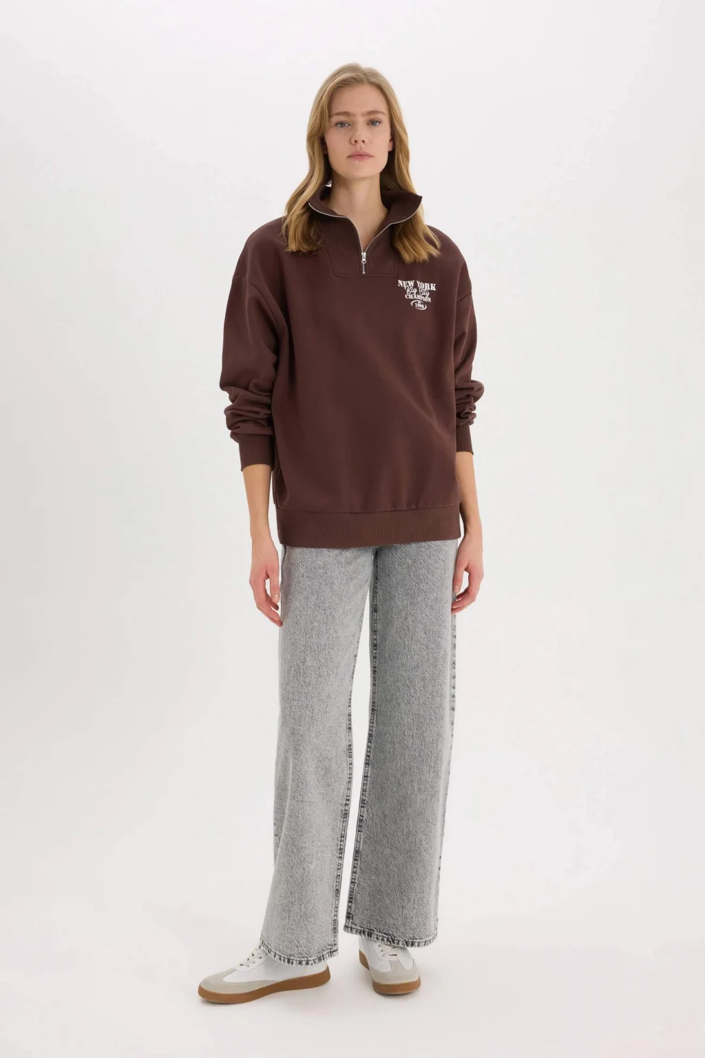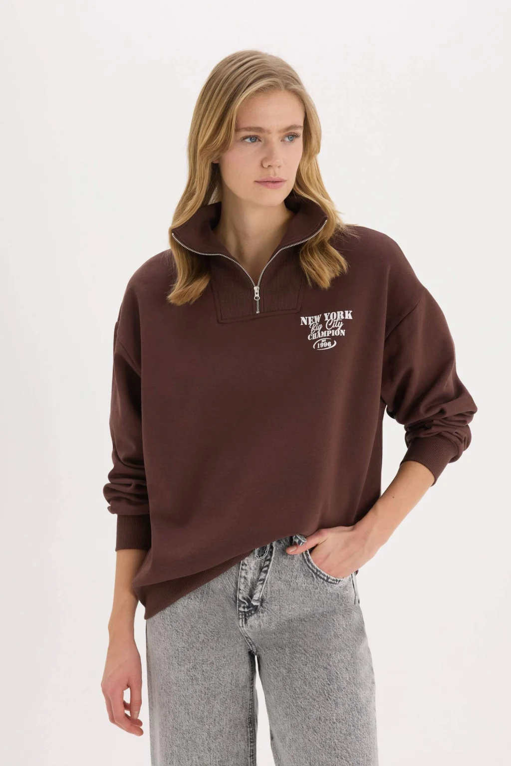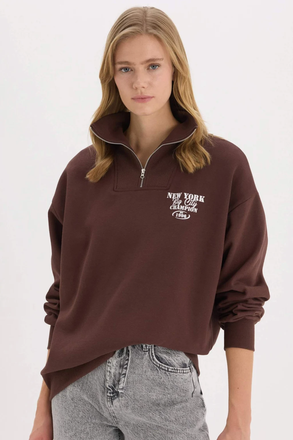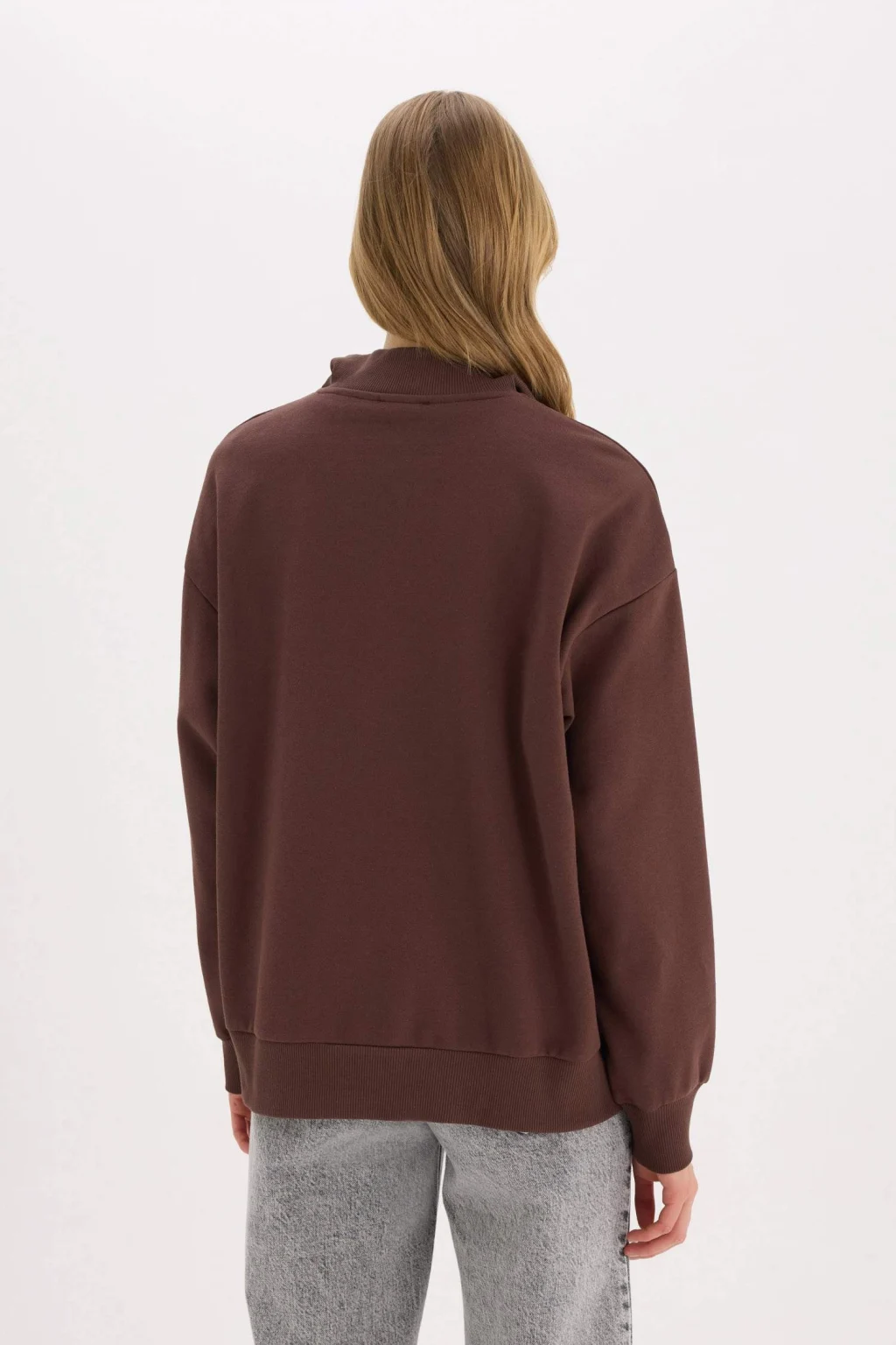Coool marka Kadın Kahve Oversize Geniş Kalıp Sweatshirt, sürdürülebilir kalın sweatshirt kumaşı ile kış mevsimine özel. Yetişkin örme giyim grubuna hitap eden temel bir parça.