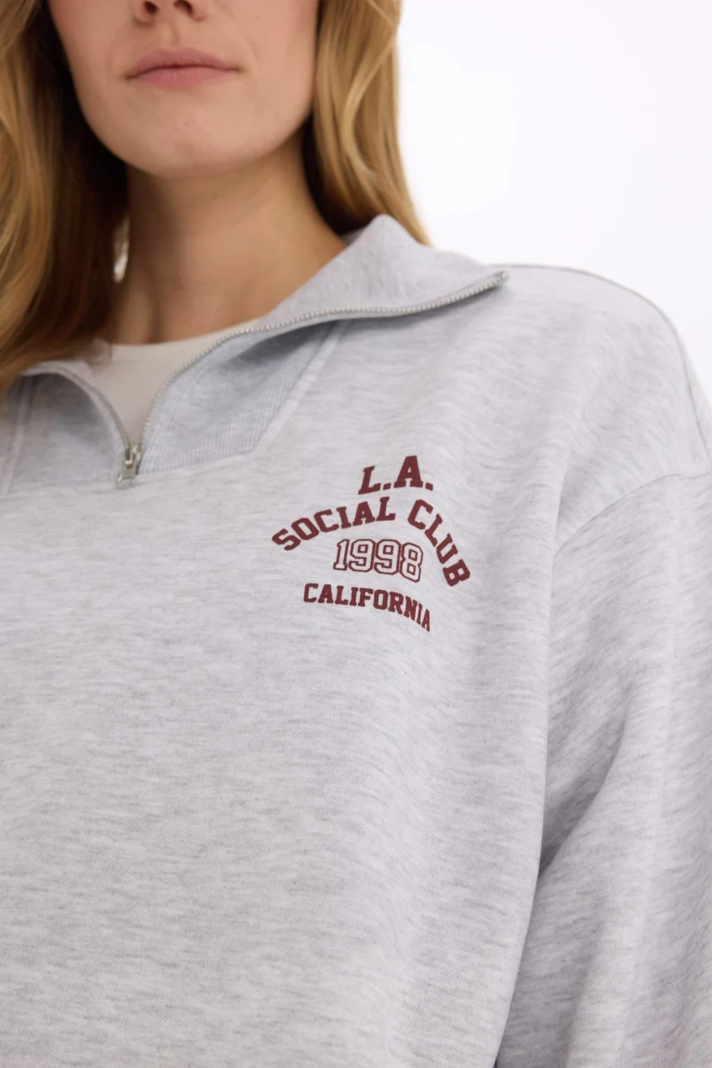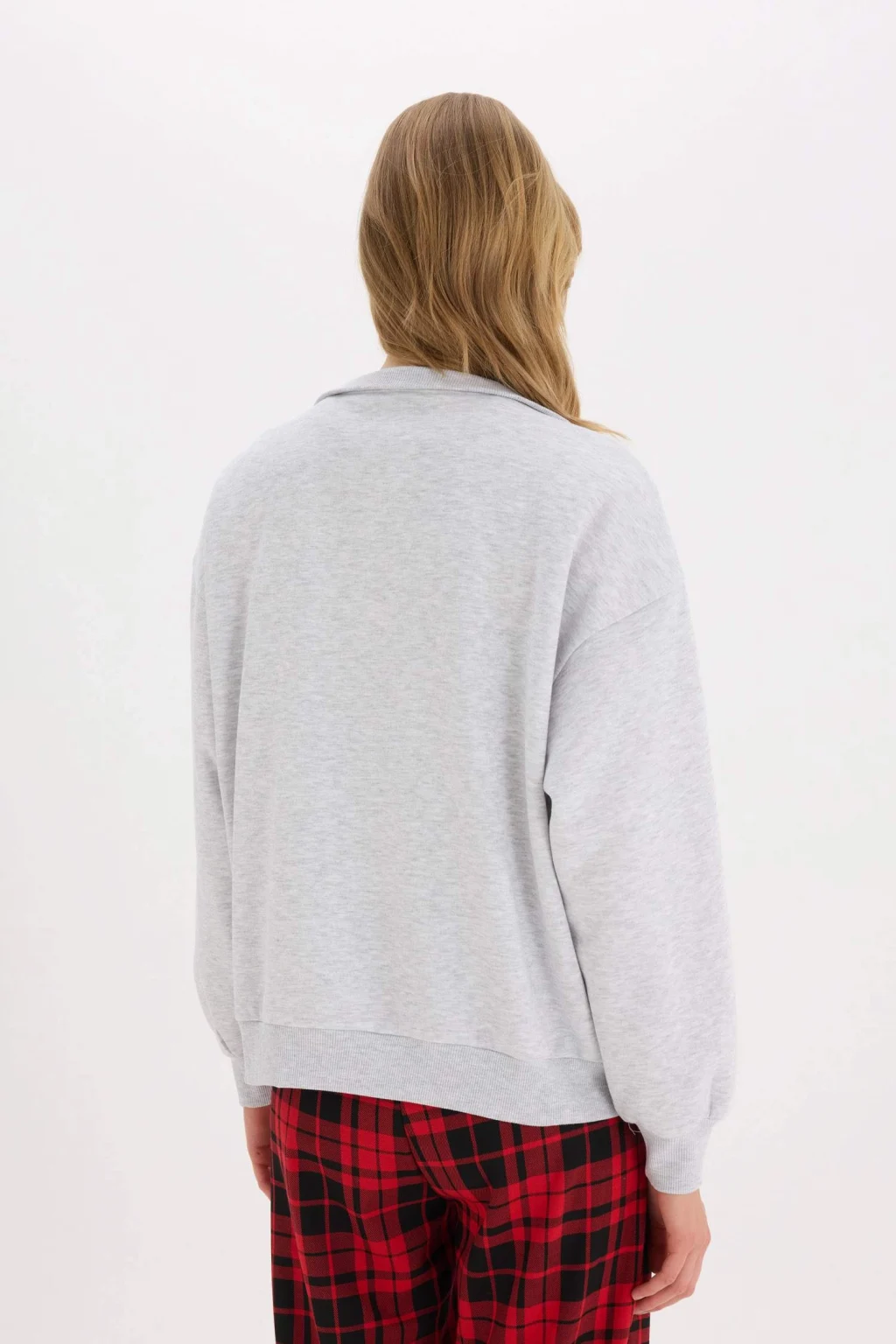 Yetişkin kadınlar için Coool markasının sürdürülebilir ve kalın sweatshirt kumaşından üretilmiş gri oversize geniş kalıp sweatshirt. Kış mevsimi için ideal, örme giyim kategorisinde temel bir ürün.