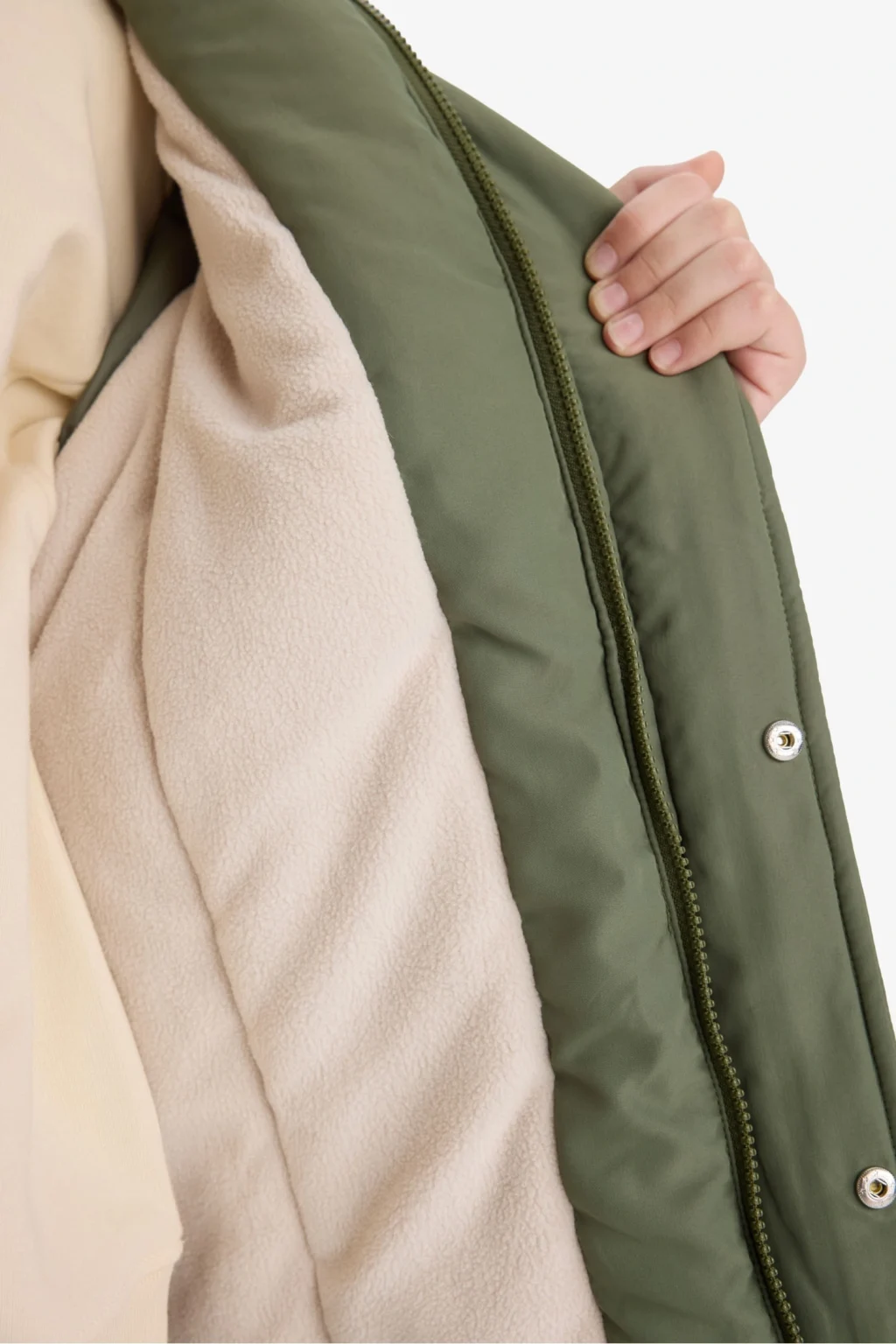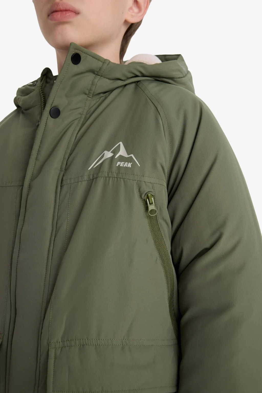 Su itici dış yüzeyi ve kapüşonlu tasarımıyla bu erkek çocuk parka, yağışlı ve soğuk havalarda sıcak ve kuru kalmayı sağlar. Polar astarı sayesinde ekstra konfor ve yumuşaklık sunar.