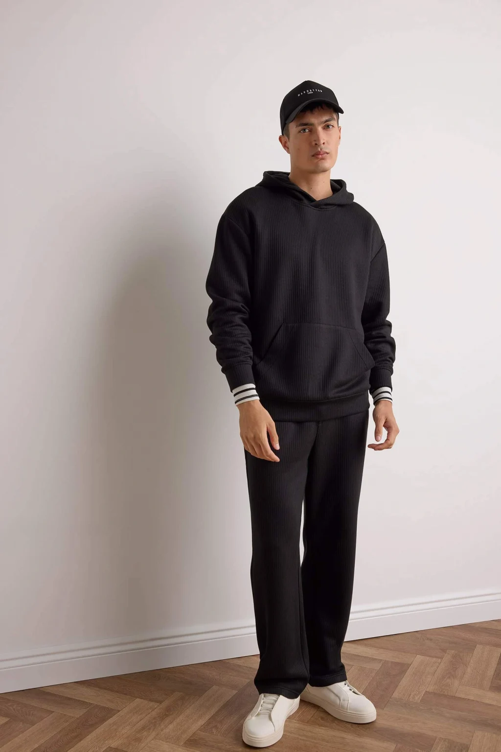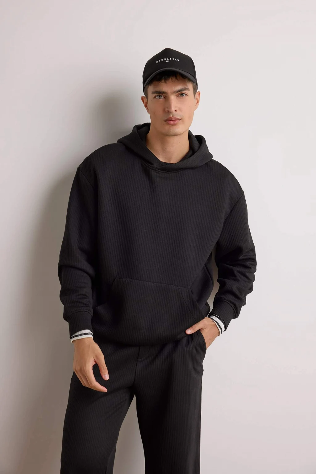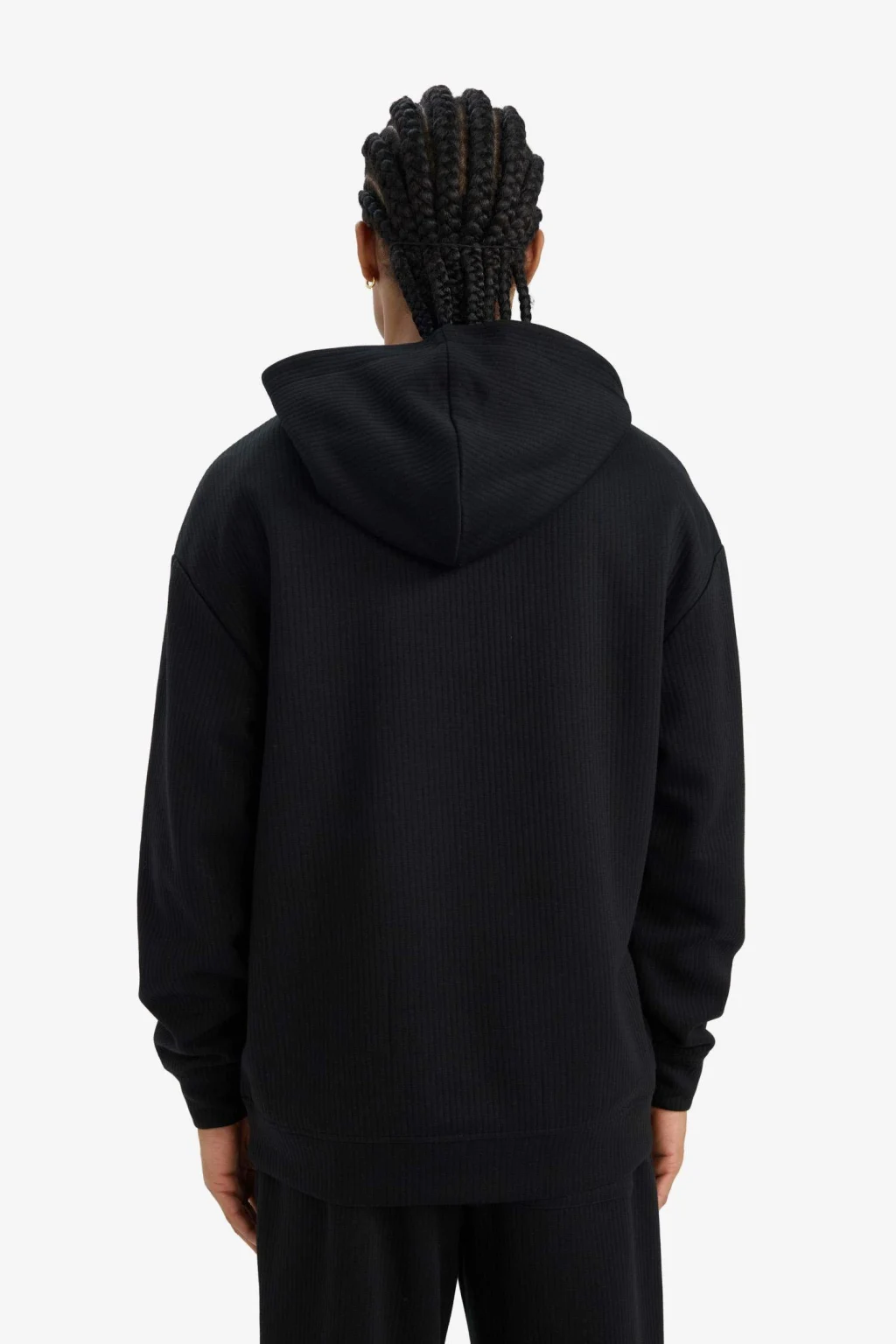 Defacto E9308AXBK81 Siyah Boxy Fit Kapüşonlu Kanguru Cepli Jakarlı Sweatshirt