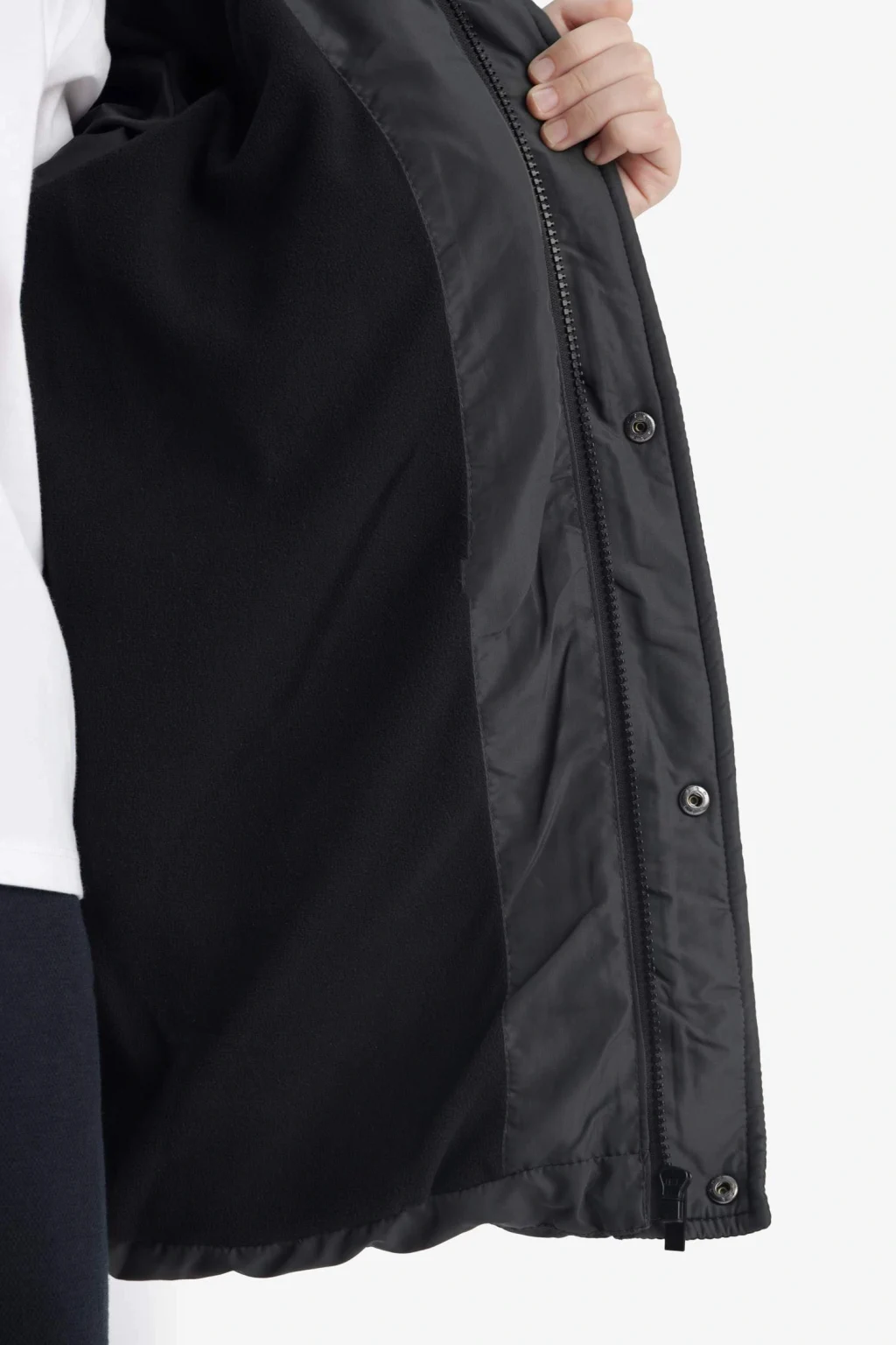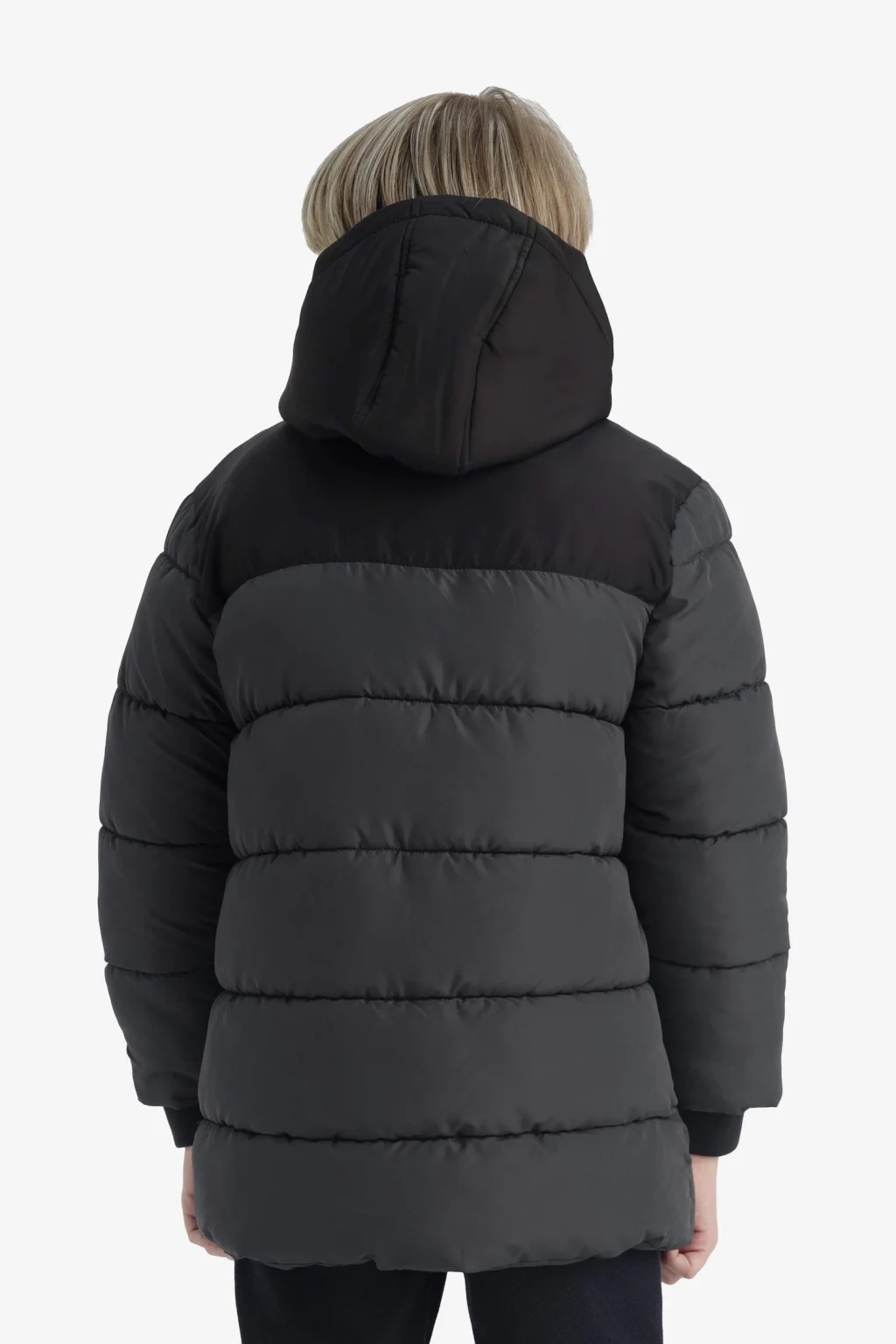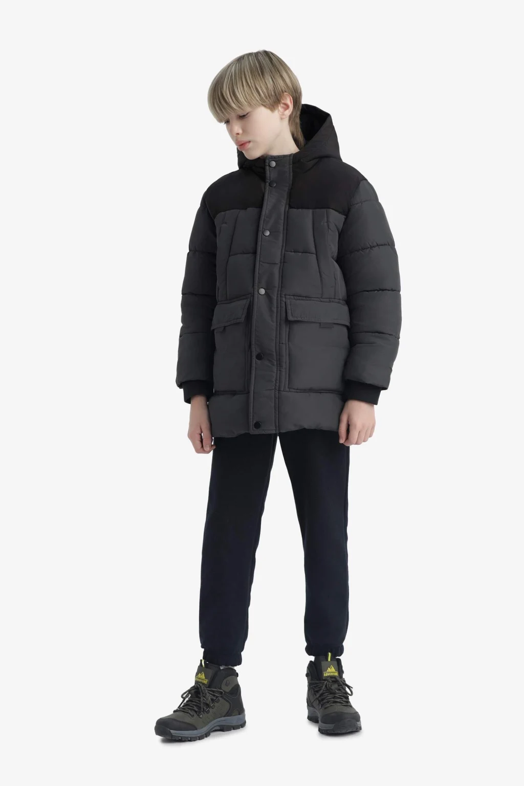 Su itici dış yüzeyi ve yumuşak polar astarıyla bu erkek çocuk parka, soğuk havalarda sıcak ve kuru kalmayı sağlar. Kapüşonlu ve cepli tasarımıyla hem kullanışlı hem şık bir dış giyim parçasıdır.