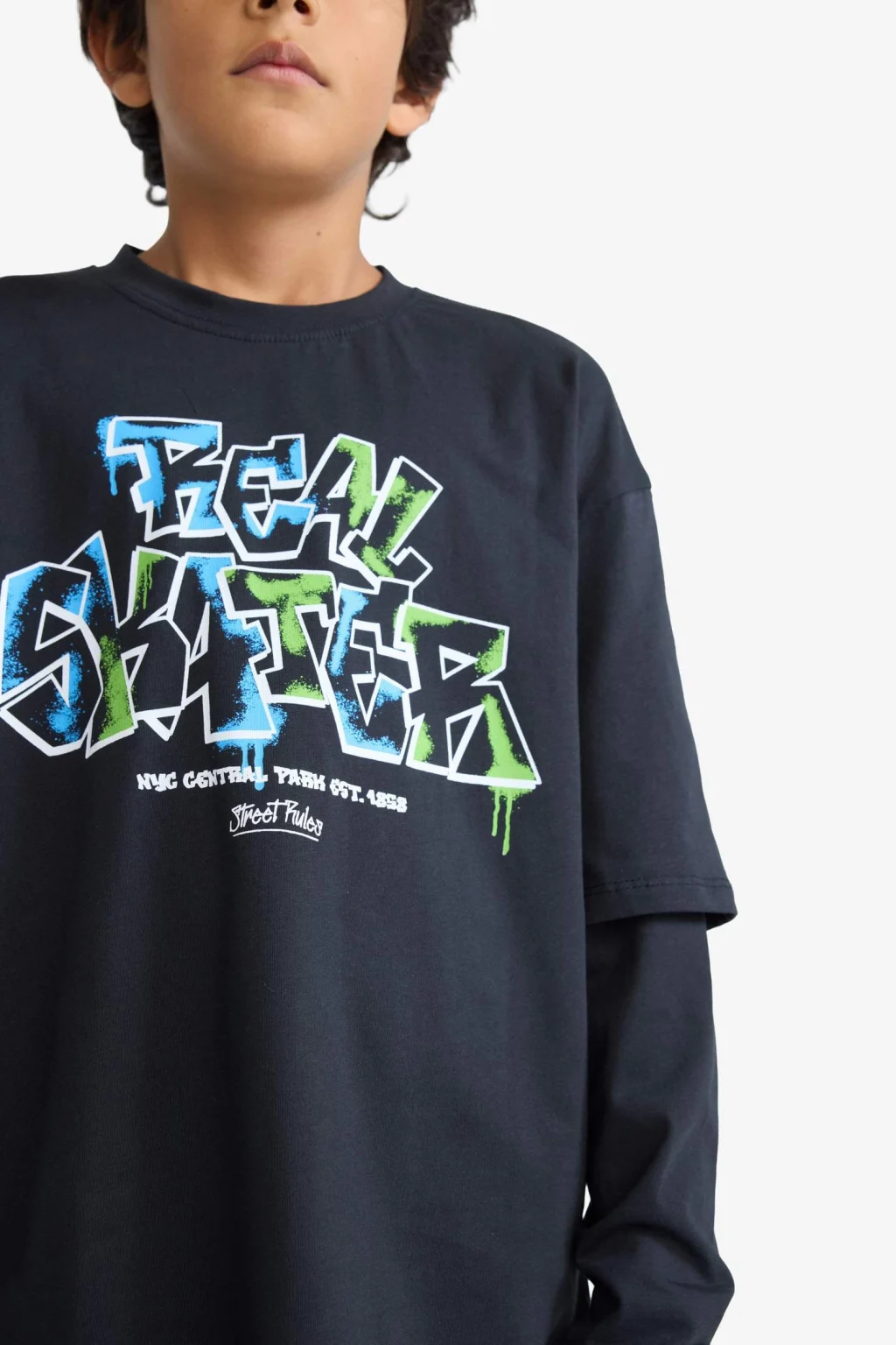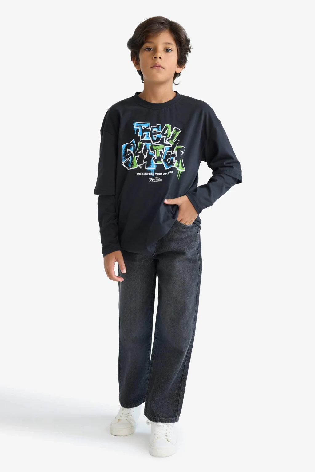 Erkek Çocuk Oversize Geniş Kalıp Bisiklet Yaka Baskılı Uzun Kollu Tişört, rahat kesimi ve dikkat çekici baskısıyla günlük stile enerji katar. Yumuşak kumaşı sayesinde gün boyu konfor sunar. Hem okul hem hafta sonu kombinleri için ideal bir tercih.
