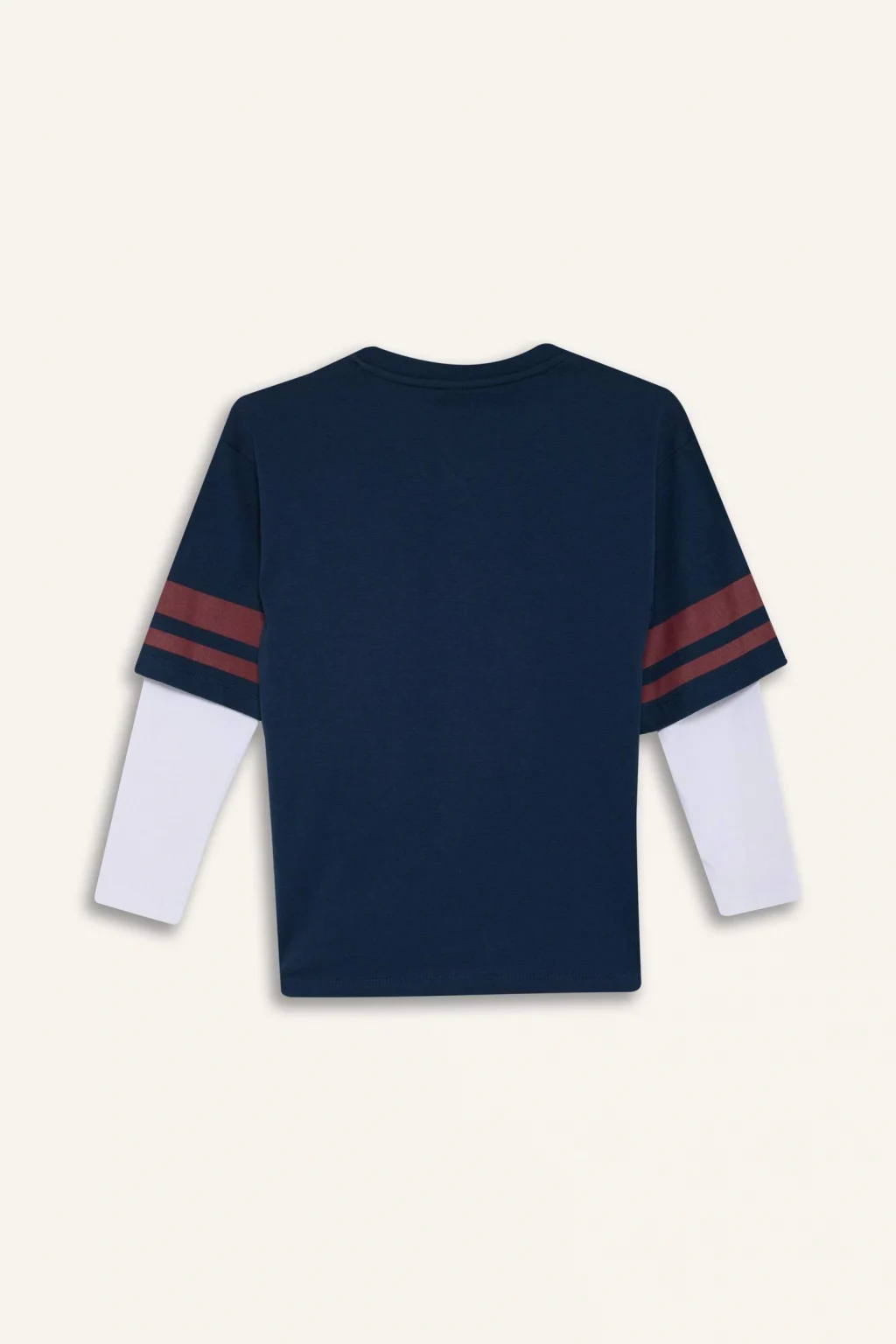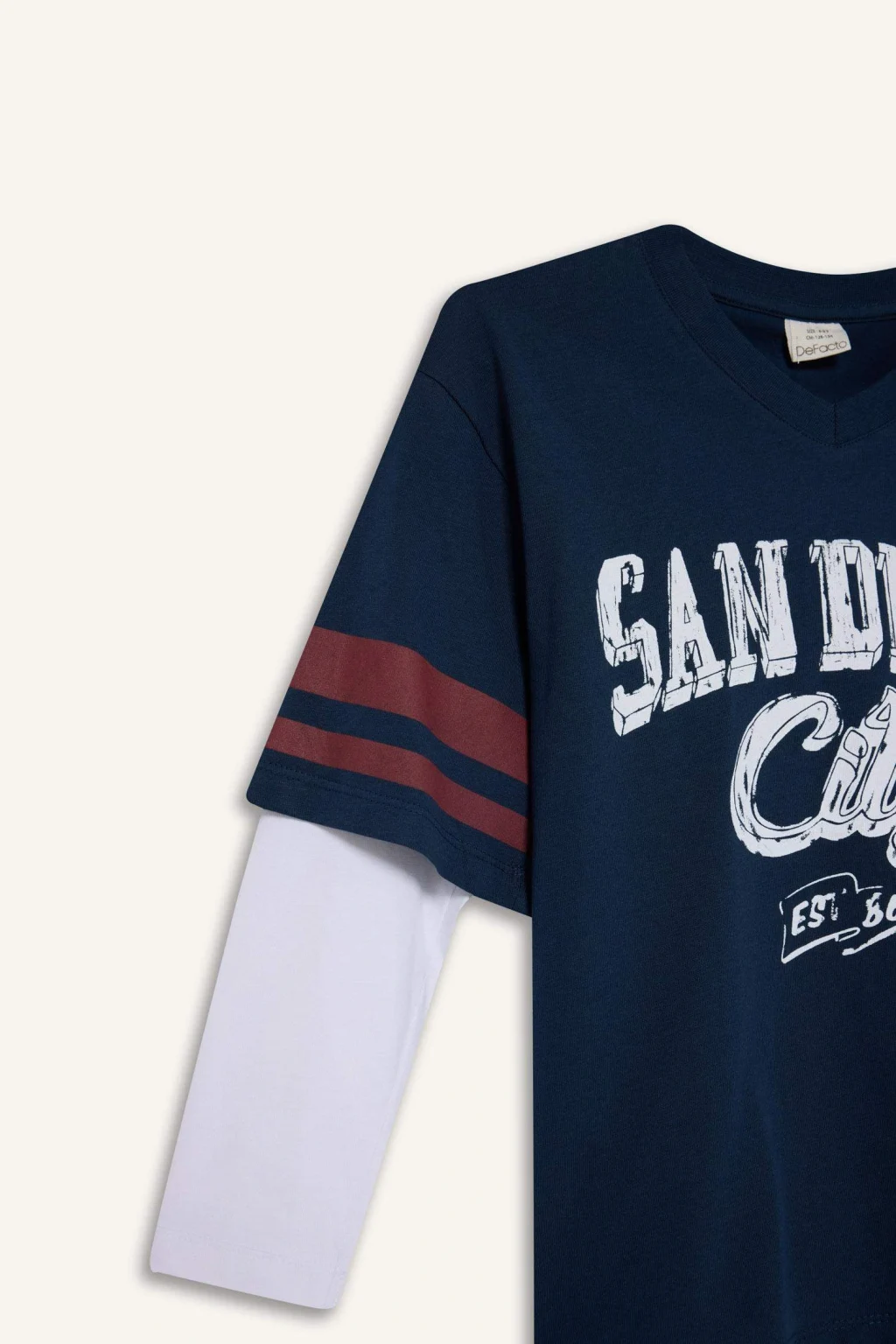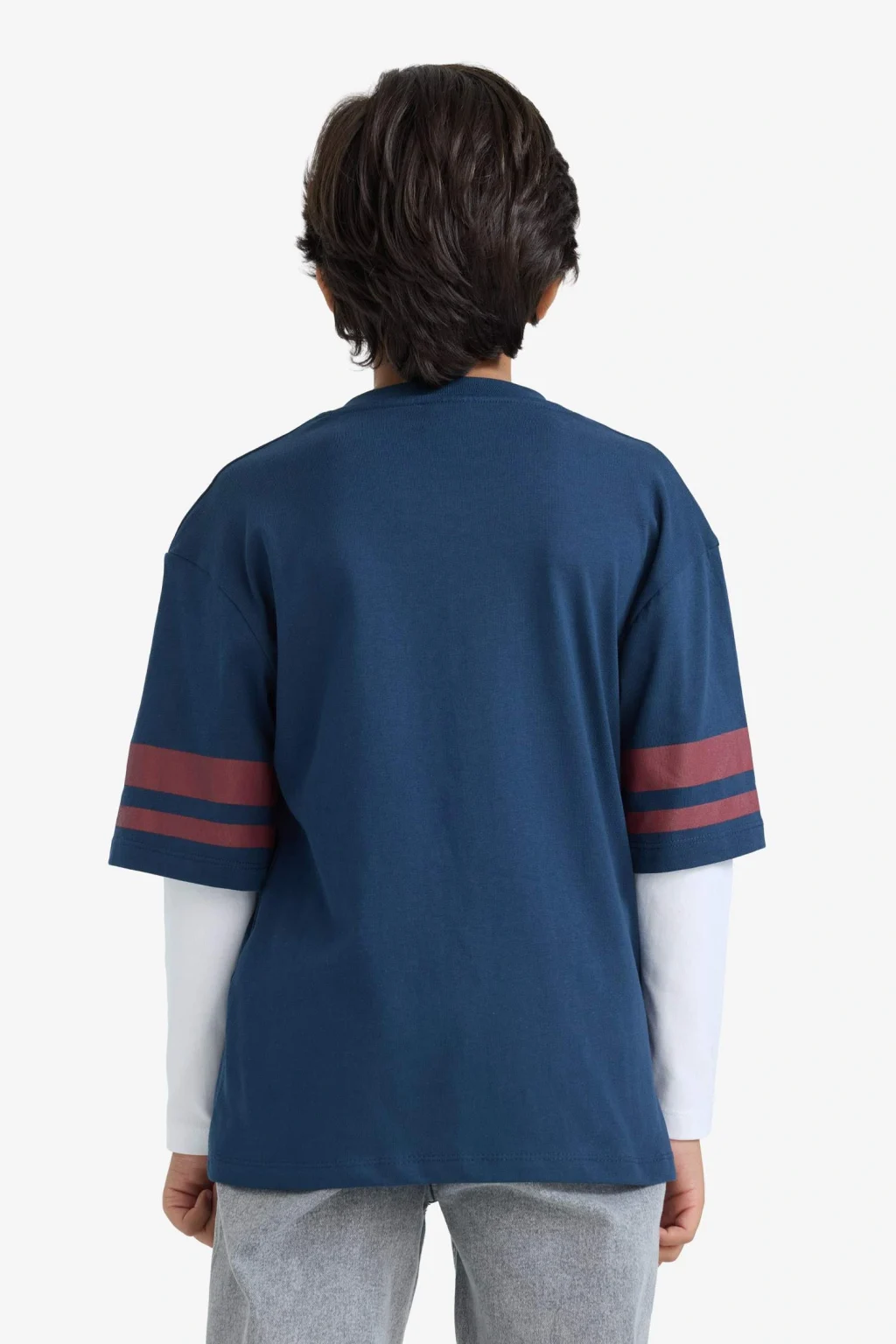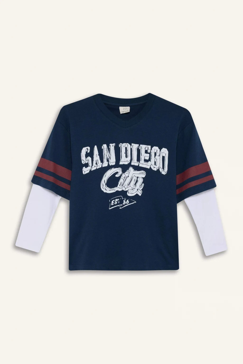 Erkek çocuk oversize geniş kalıp V yaka baskılı uzun kollu tişört, rahat kesimi ve eğlenceli baskısıyla gün boyu konfor ve stil sunar. Yumuşak kumaşı sayesinde hareket özgürlüğü sağlar.