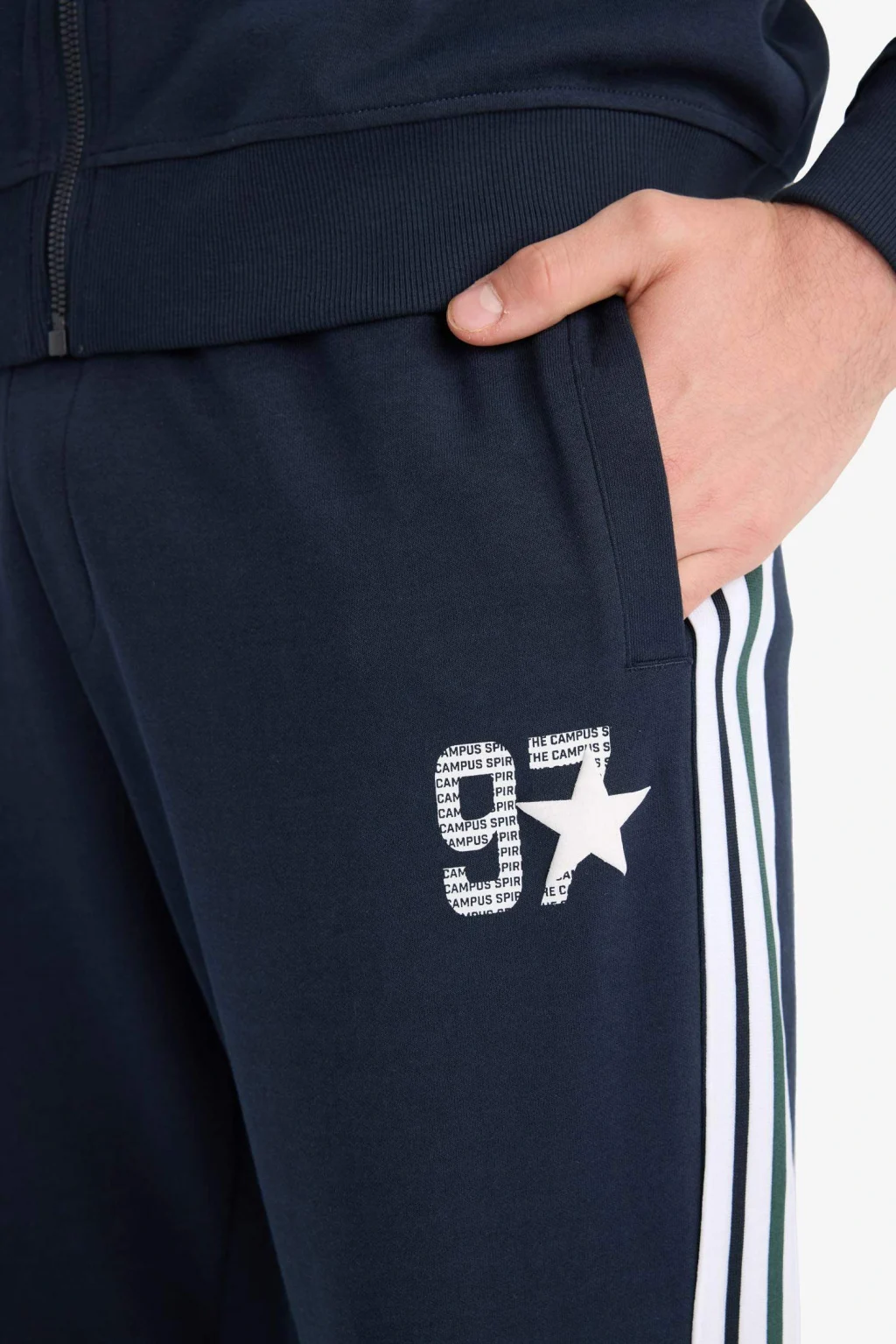 Regular fit beli bağcıklı jogger eşofman altı, rahat kesimi ve modern baskı detaylarıyla şıklığı konforla buluşturur. Ayarlanabilir beli sayesinde gün boyu ideal uyum sağlar.