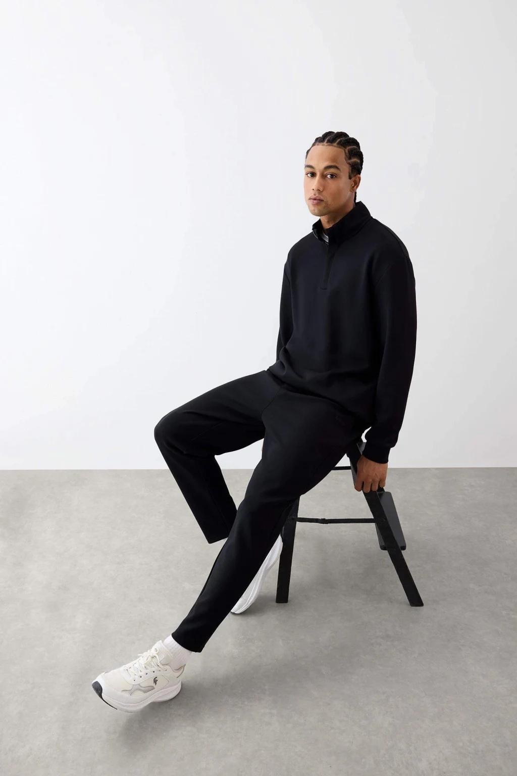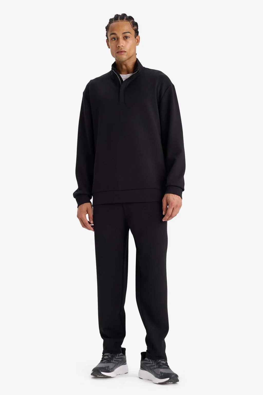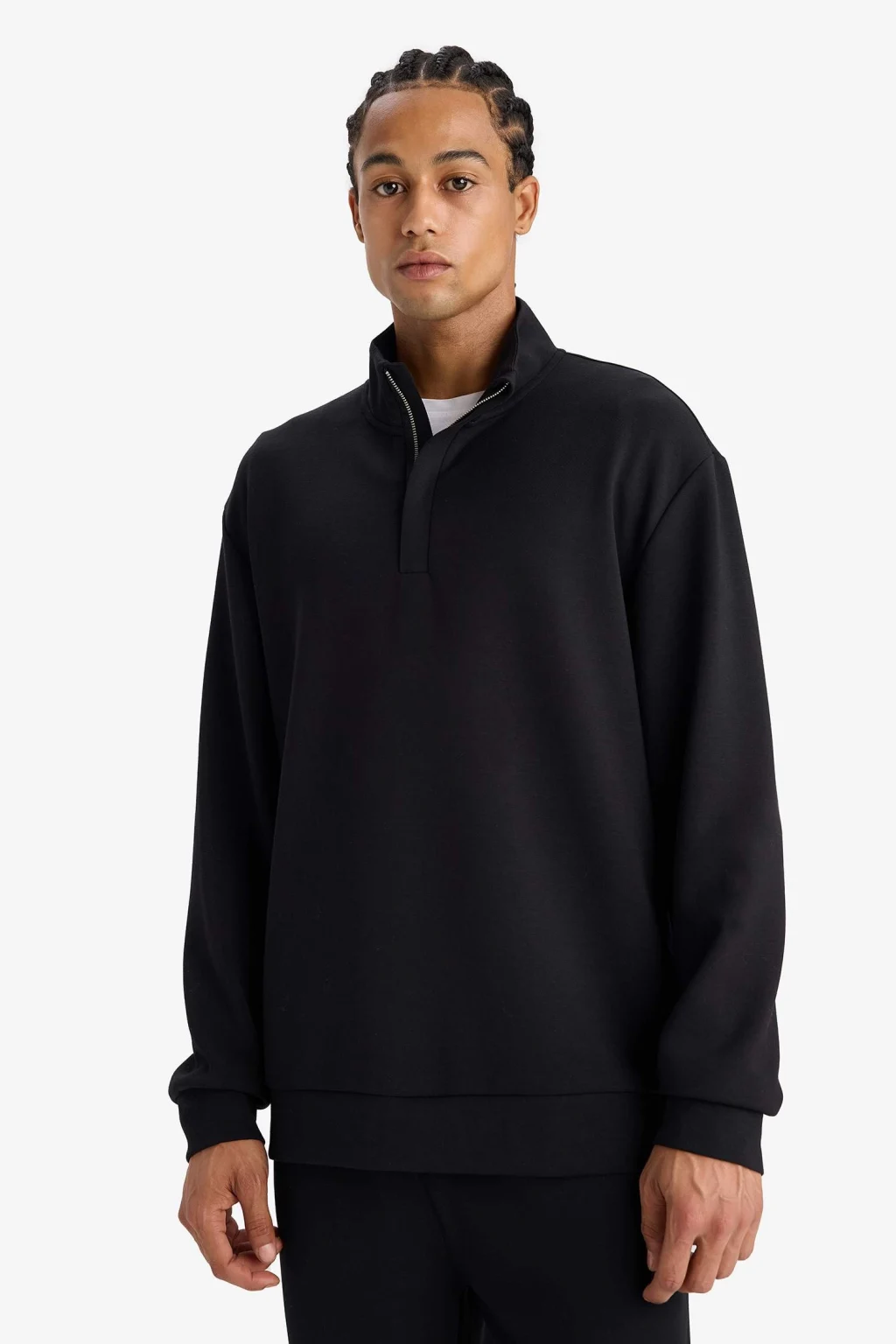 Modal karışımlı yumuşak kumaşıyla öne çıkan bu DeFactoFit sporcu sweatshirt, yarım fermuarlı dik yaka tasarımıyla hem şık hem fonksiyonel bir stil sunar. Standart fit kesimi sayesinde antrenmanlarda ve günlük kullanımda konfor sağlar.